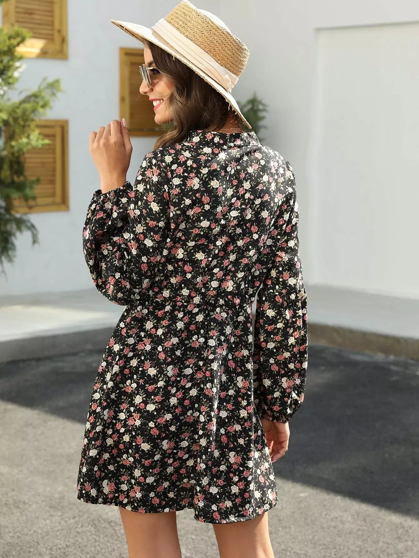 فستان قميص مطبوع بأزرار أمامي بطبعة زهور