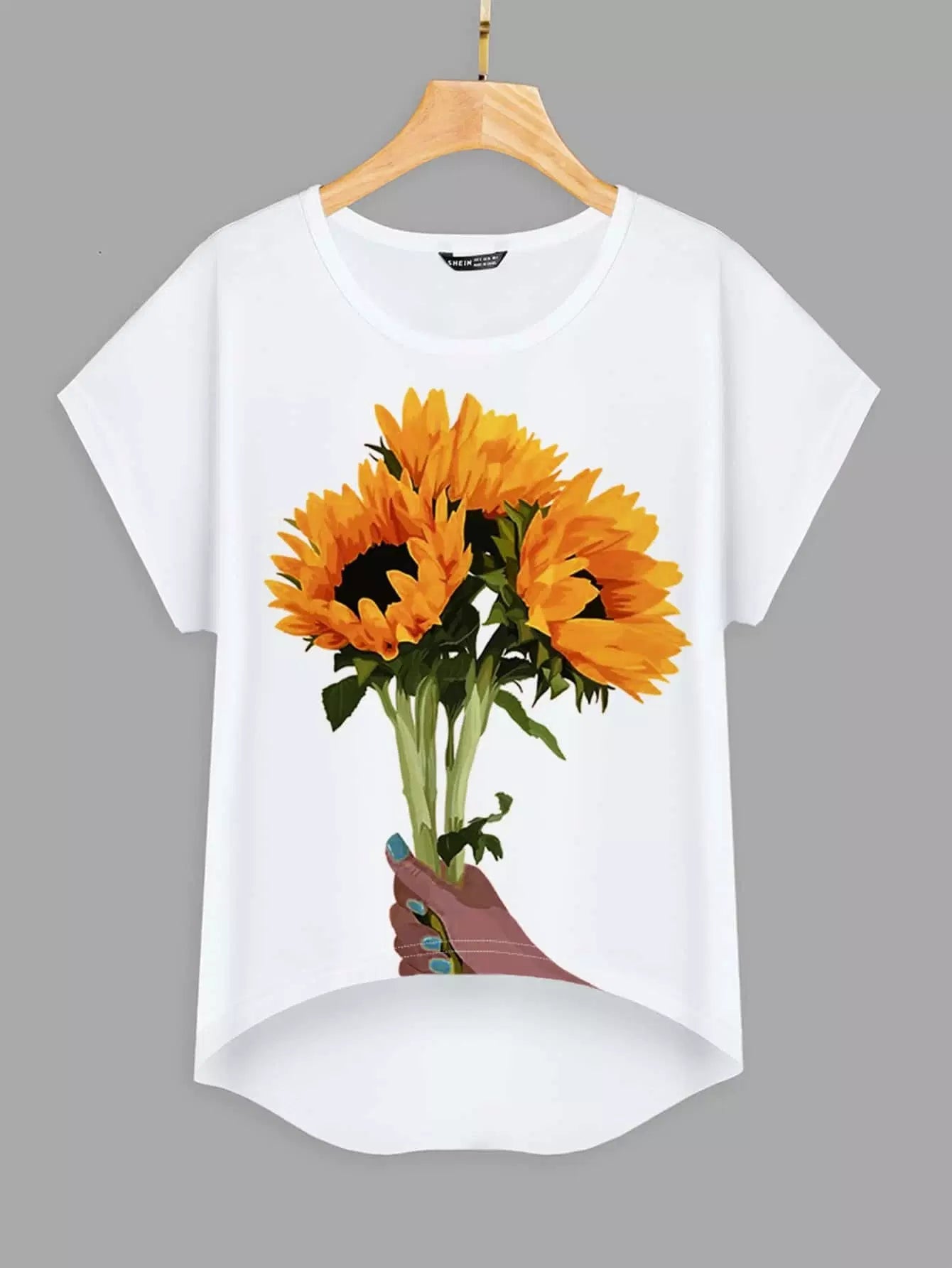 تي شيرت بطبعة زهور بطبعة زهور عالية منخفضة