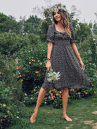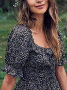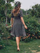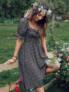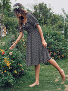 فستان قميص مخطط بطبعات زهور بدون حزام