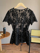طقم بلوزة دانتيل مطرزة أنيقة وفستان داخلي بلون واحد من فرانكليا للنساء
