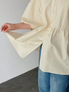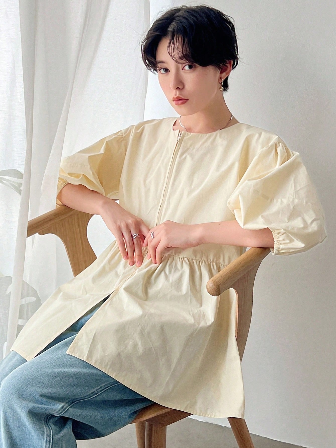 FRIFUL Women's Casual Solid Color Puff Sleeve Spring/Summer Shirt,Ruffle
