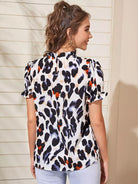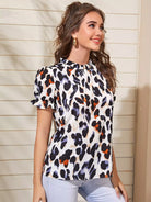 بلوزة كشكش برقبة كشكش بأكمام منفوشة مطبوعة بالكامل