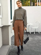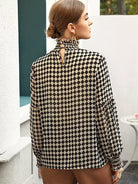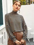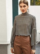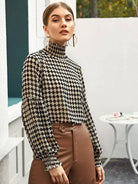 بلوزة كشكش عالية الرقبة عالية الرقبة ذات مربعات شيرد