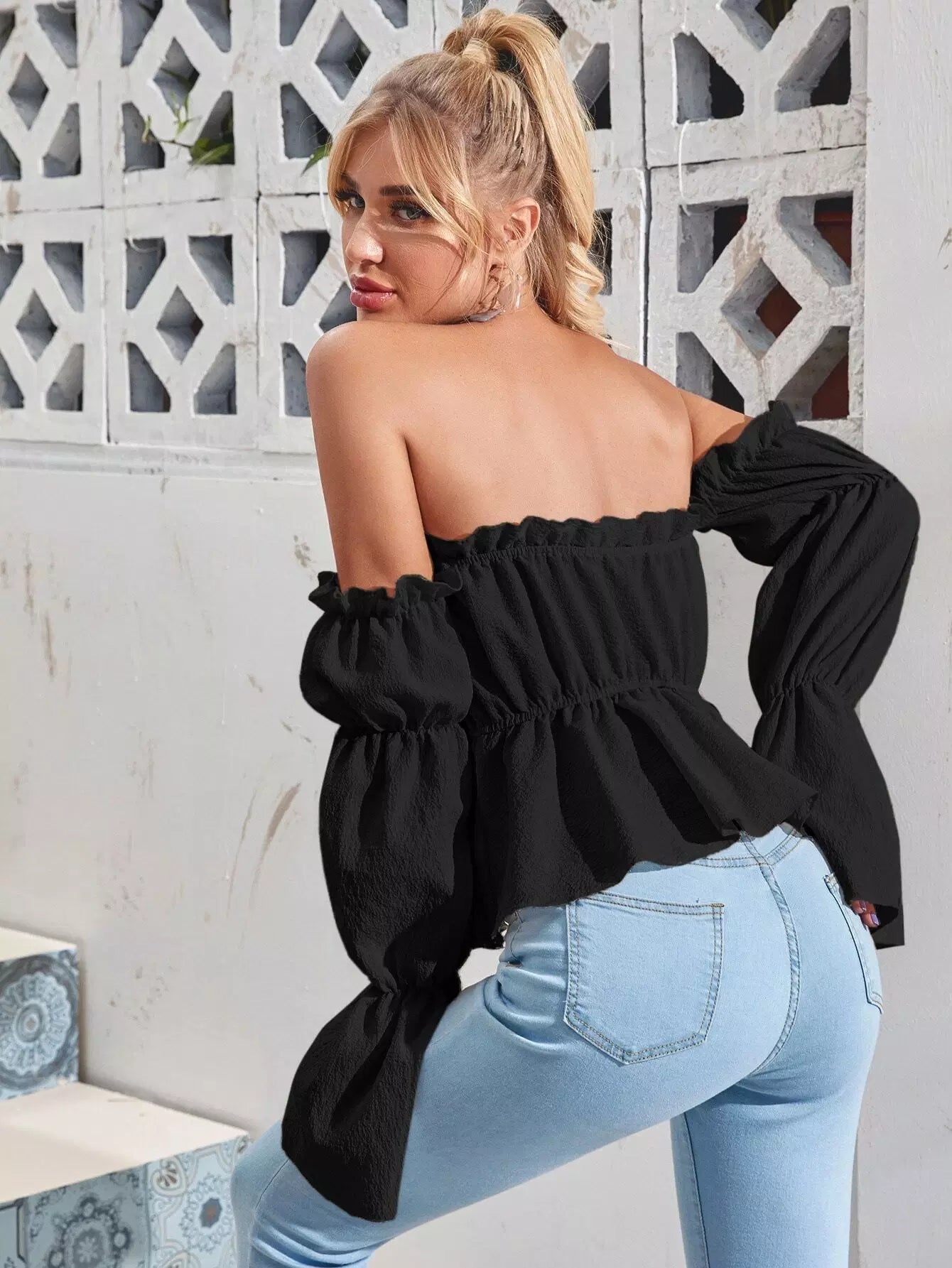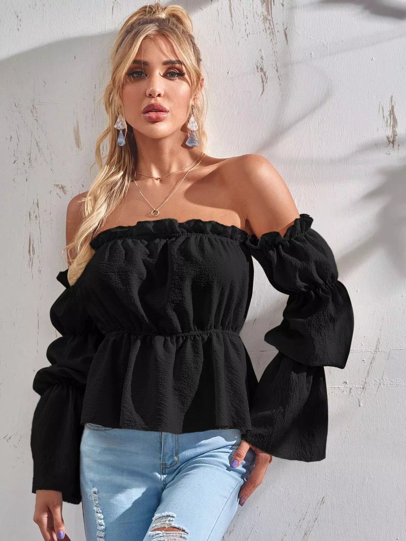 بلوزة بأكمام كشكش بأكمام كشكش بيبلوم