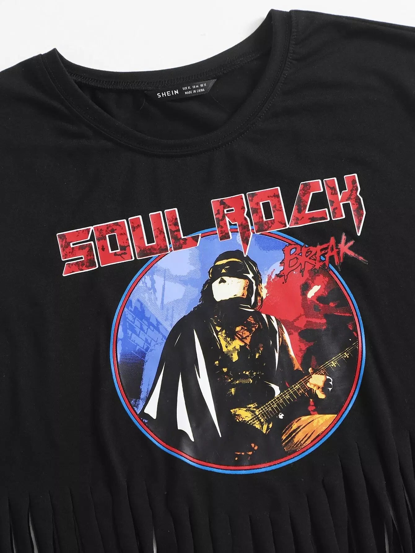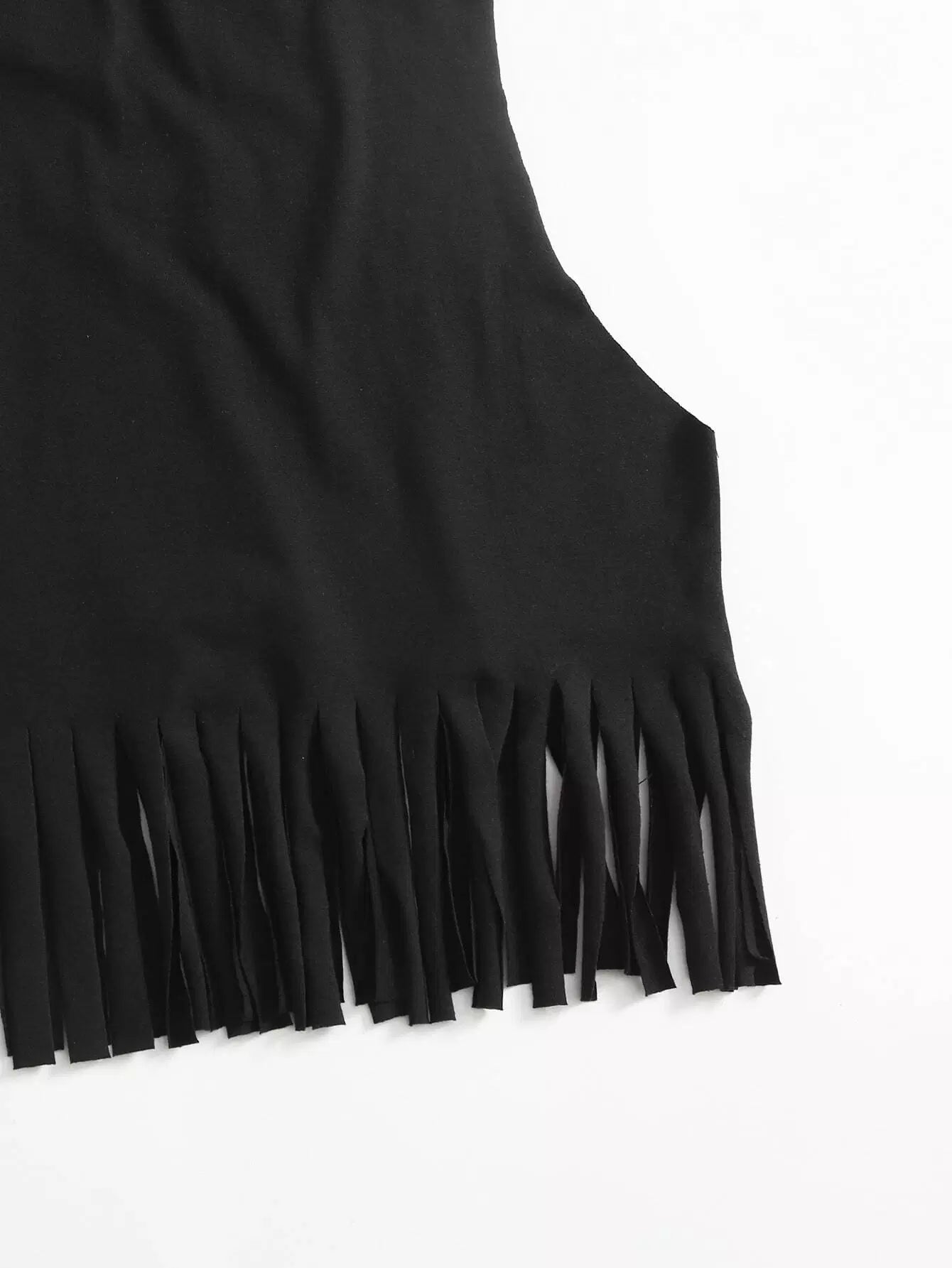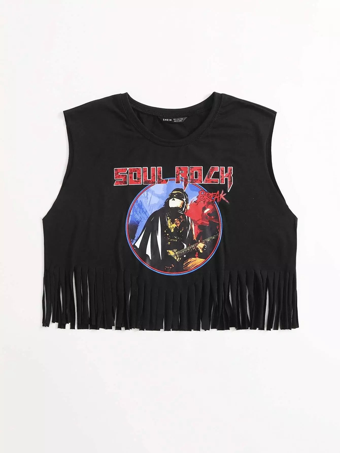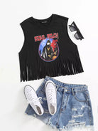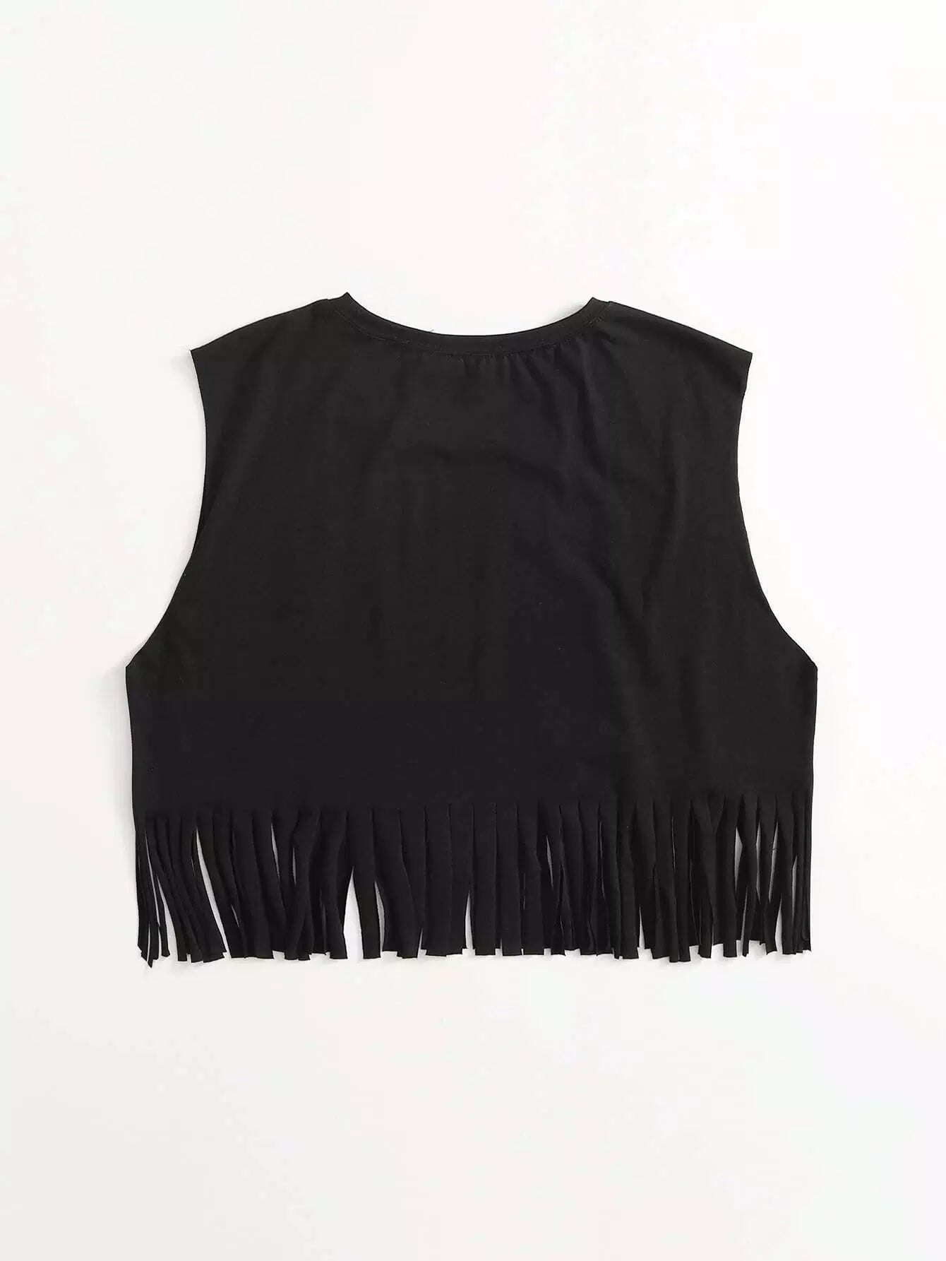 توب بحواف مهدبة على شكل وحرف جرافيك بلا أكمام