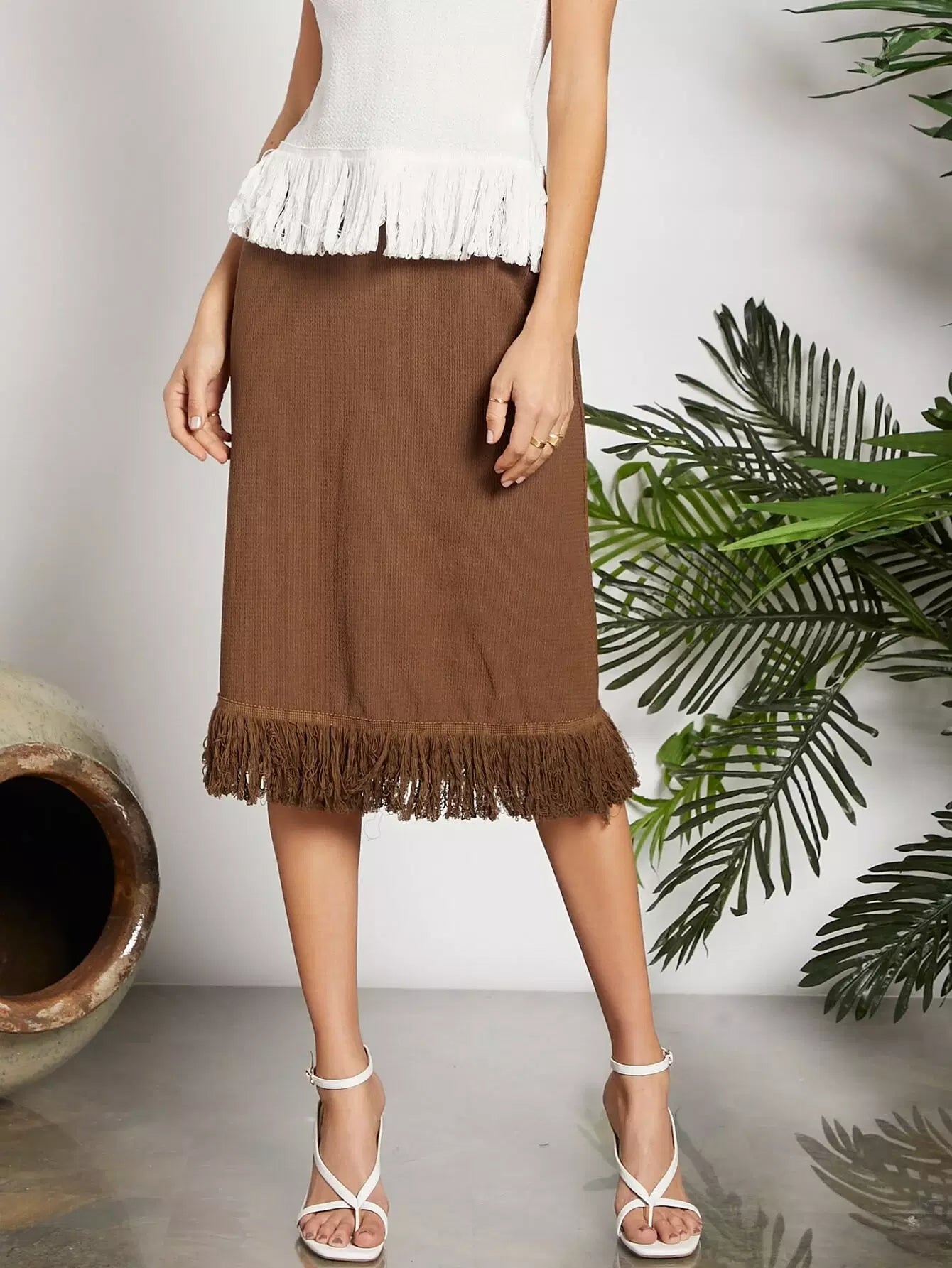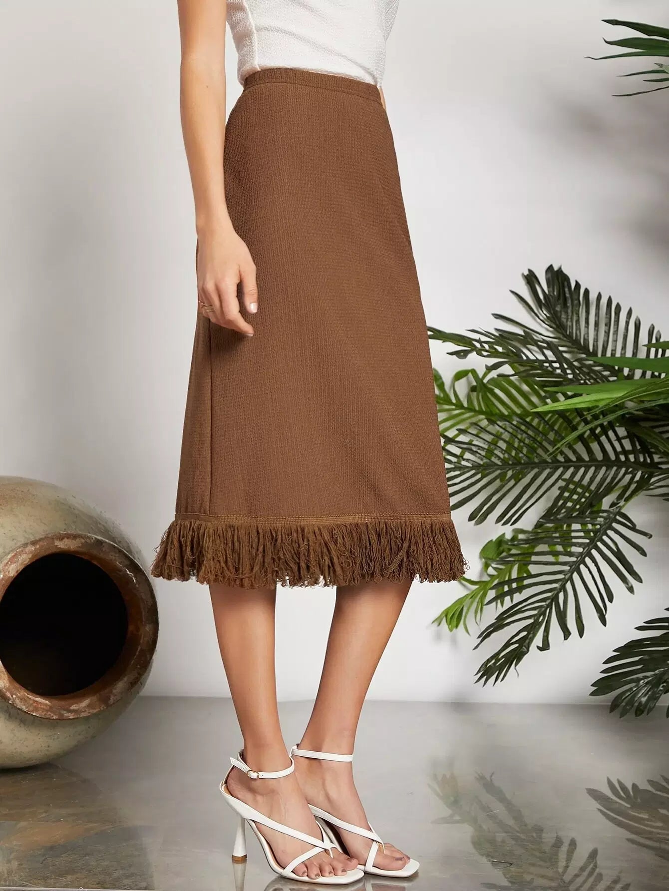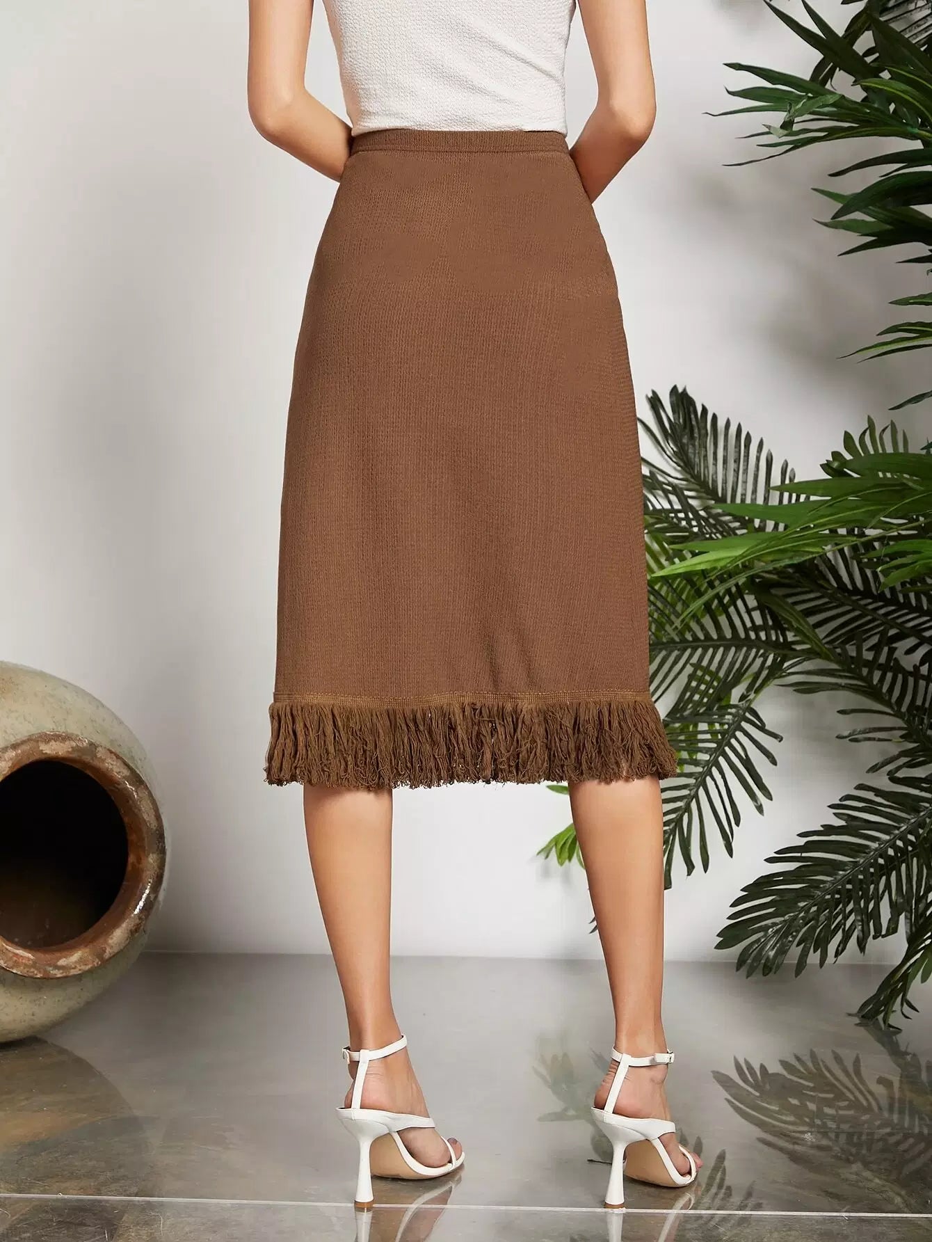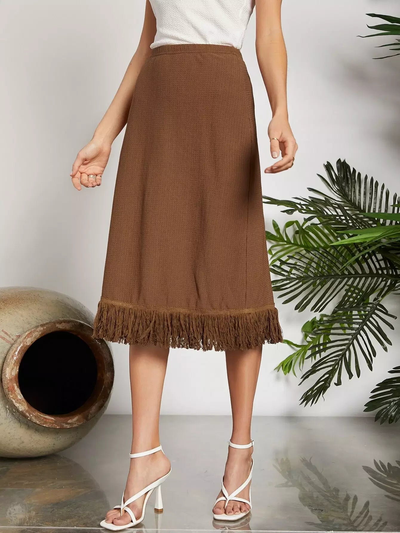 تنورة عالية الخصر عالية الحاشية