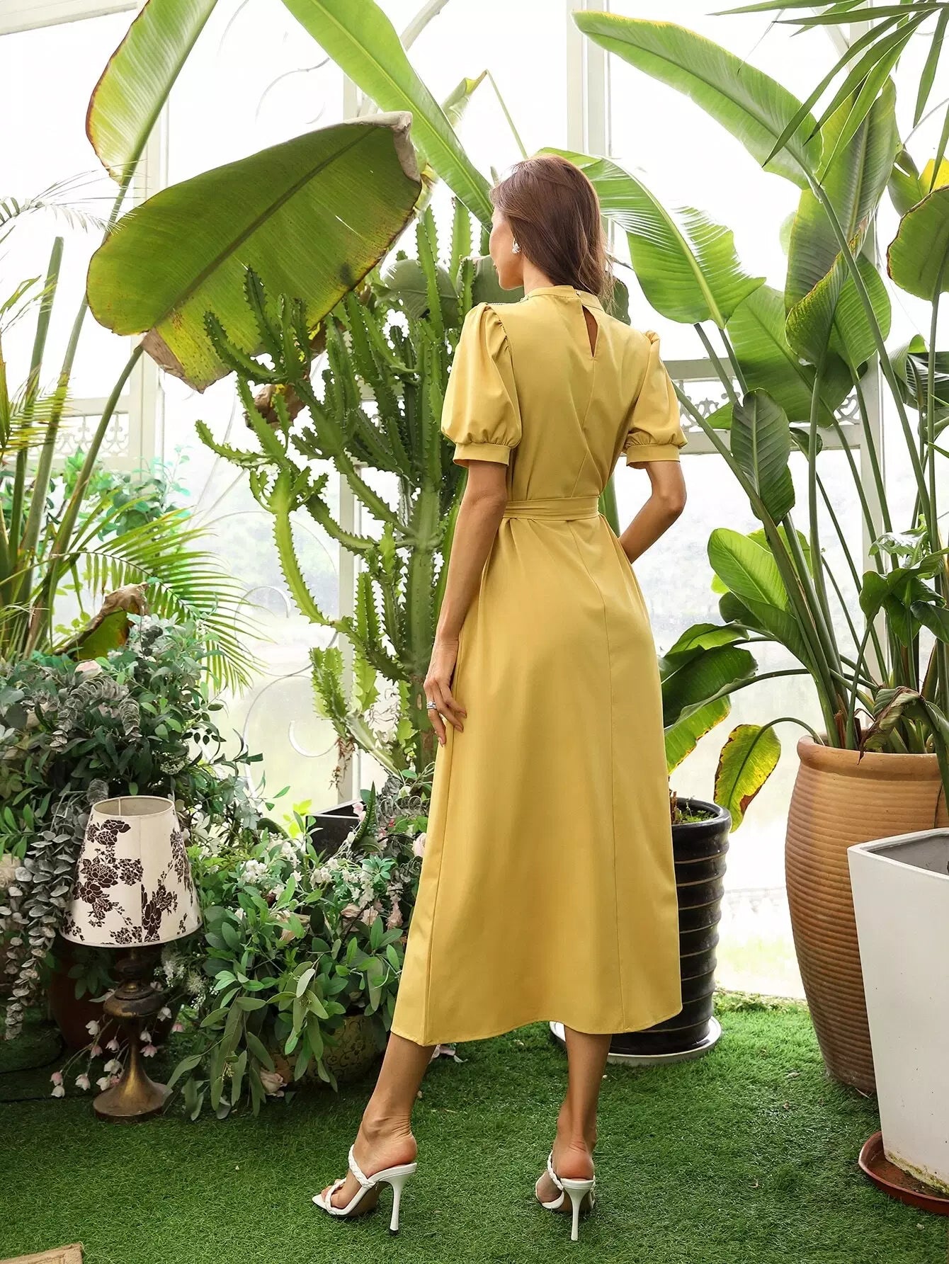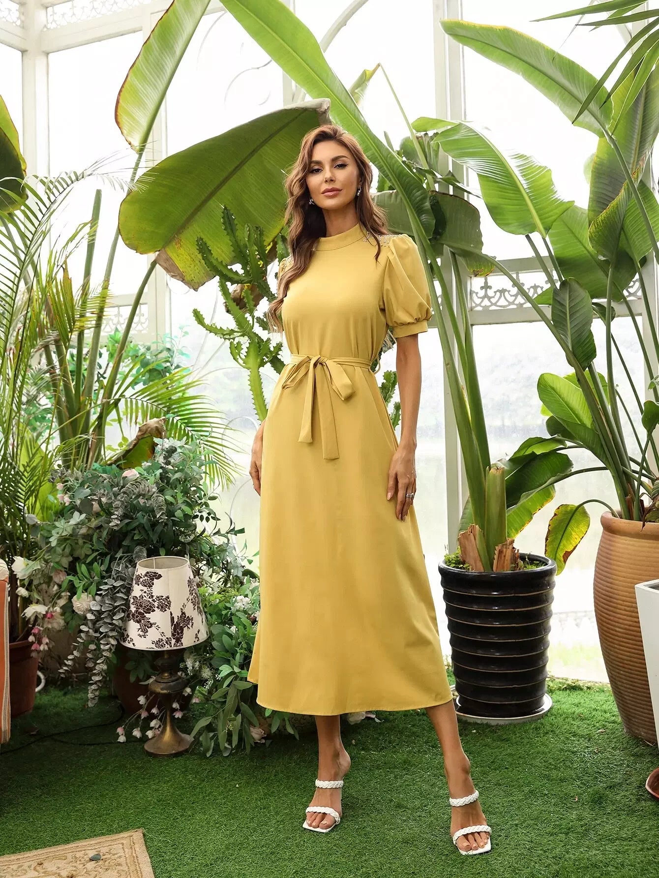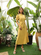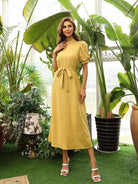 فستان على شكل حرف A مزين بأهداب بدون حزام