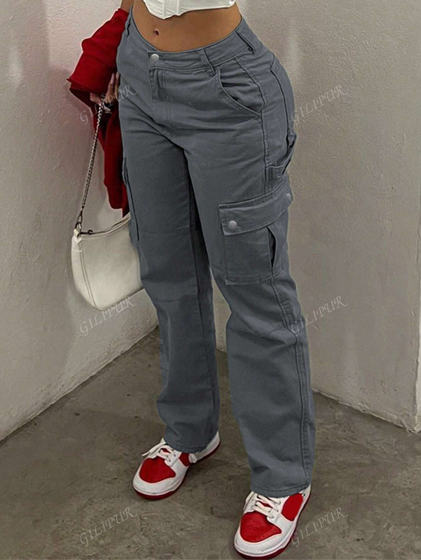 GILIPUR Y2K Women's Solid Color Cargo Pocket Straight Leg Casual Loose Pants Back To School Streetwear
