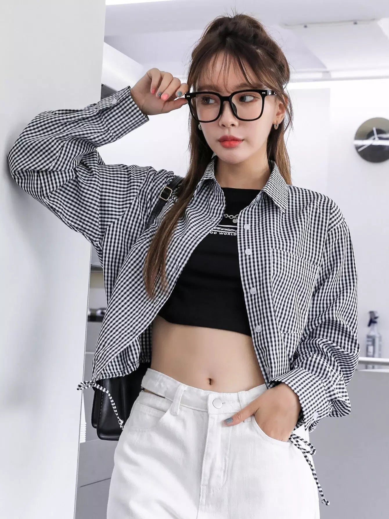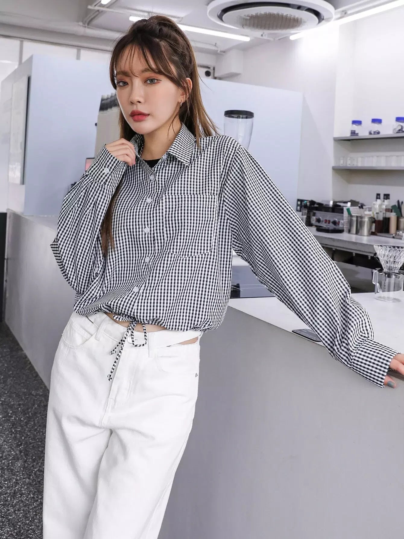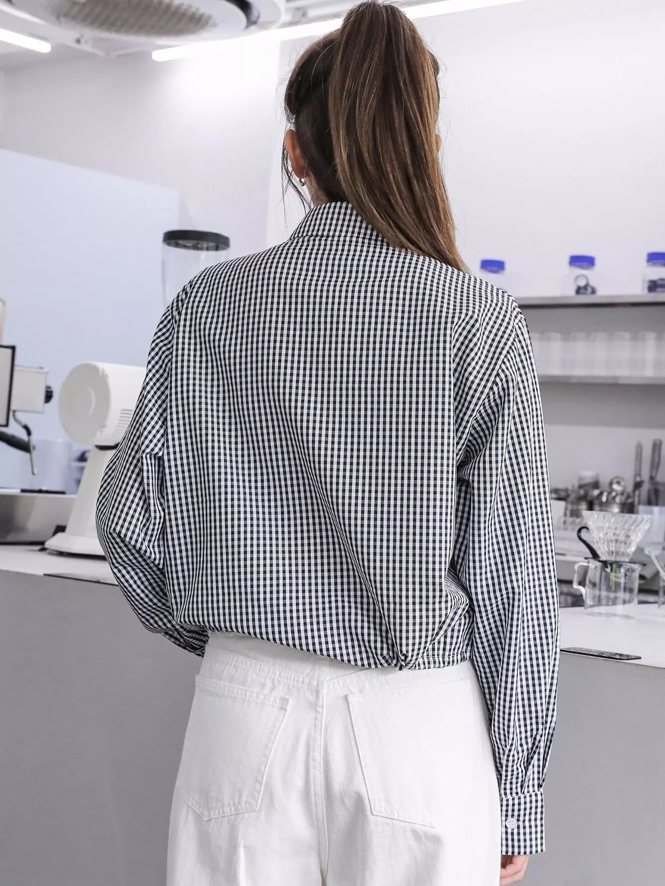بلوزة مرقعة بطبعة جيب من القماش القطني