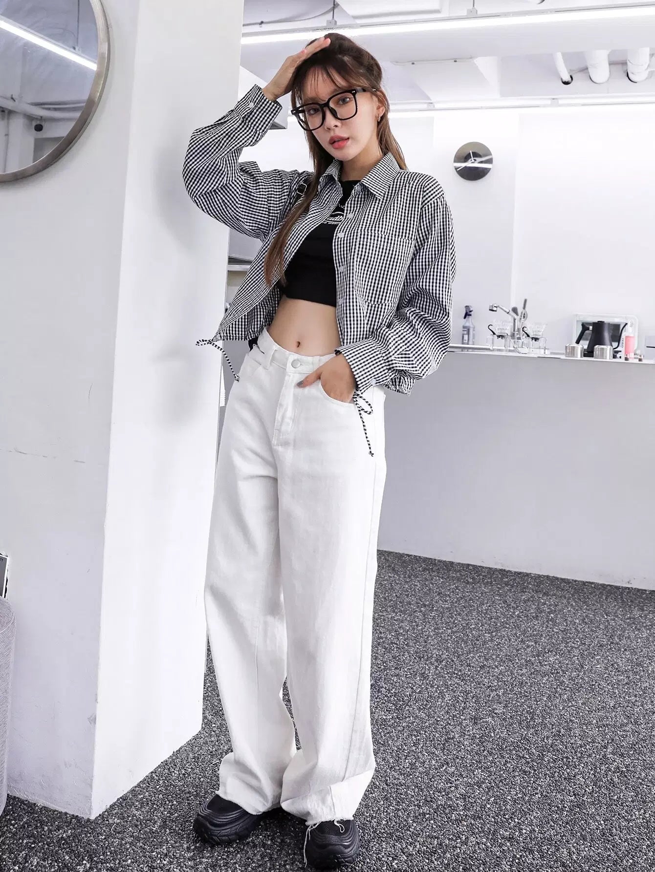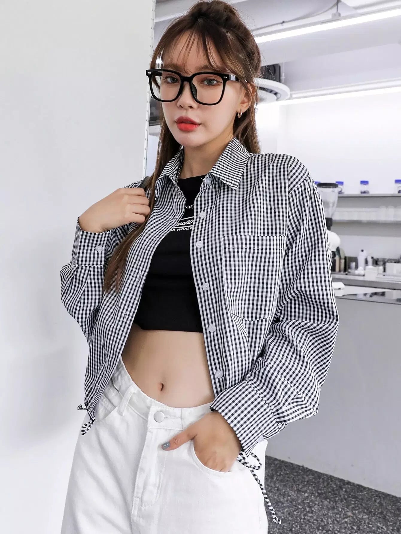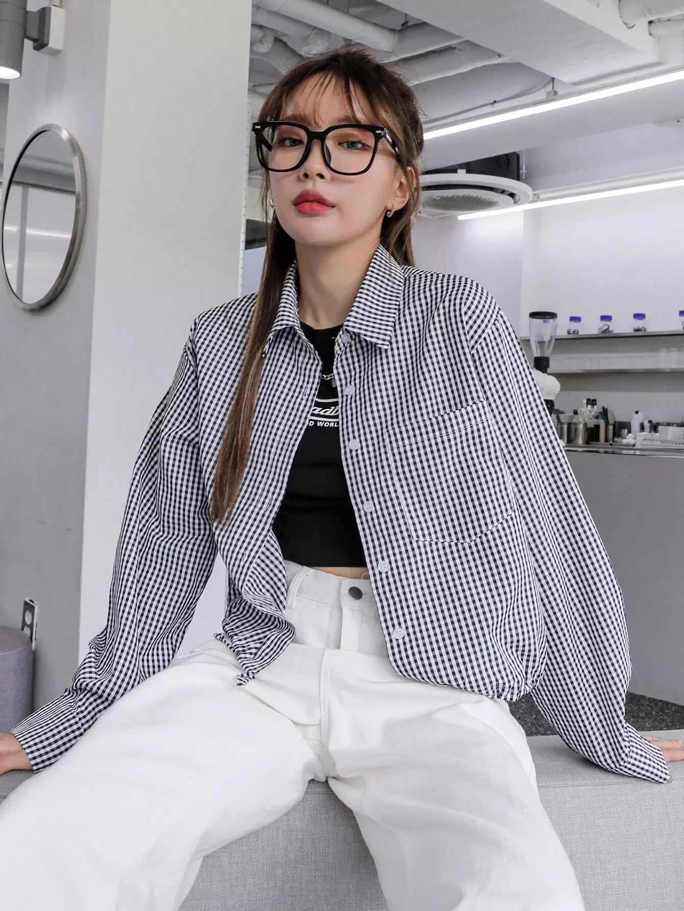 بلوزة مرقعة بطبعة جيب من القماش القطني