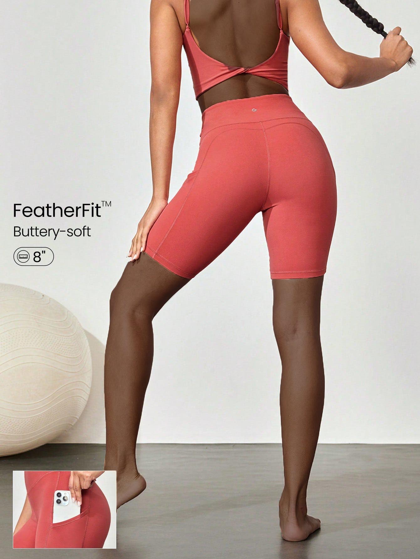 GLOWMODE 8" FeatherFitâ„ High-Waist Pocket Biker Shorts Cycling Running Gym Workout Summer