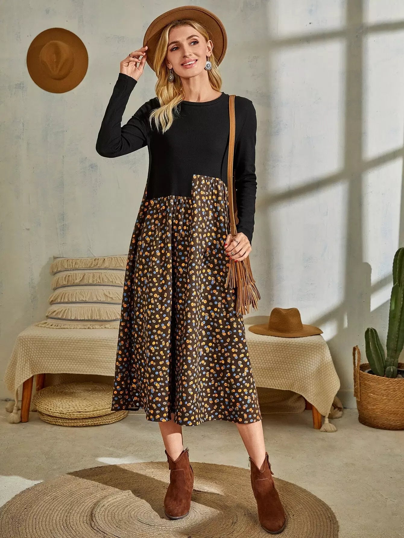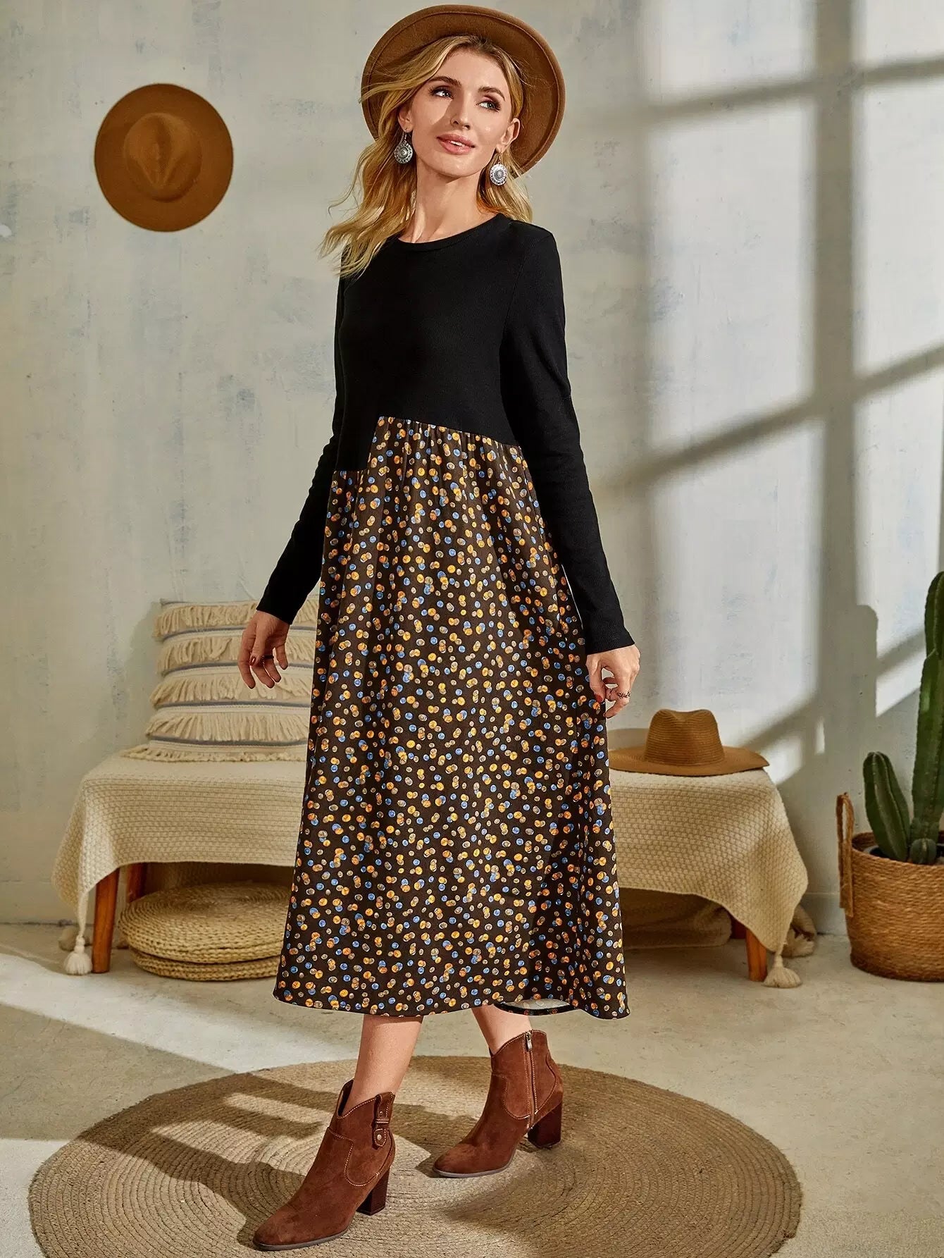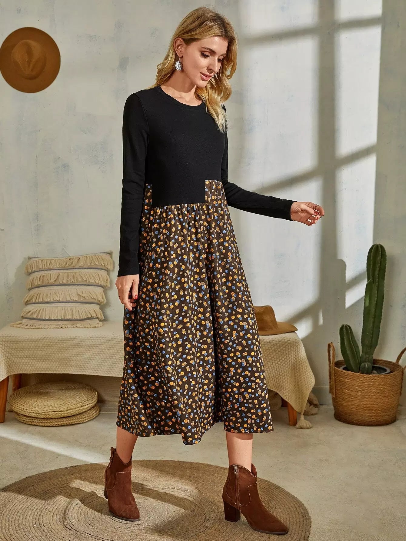 فستان بطبعات جرافيكية بألوان متعددة