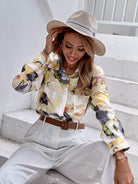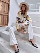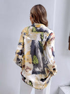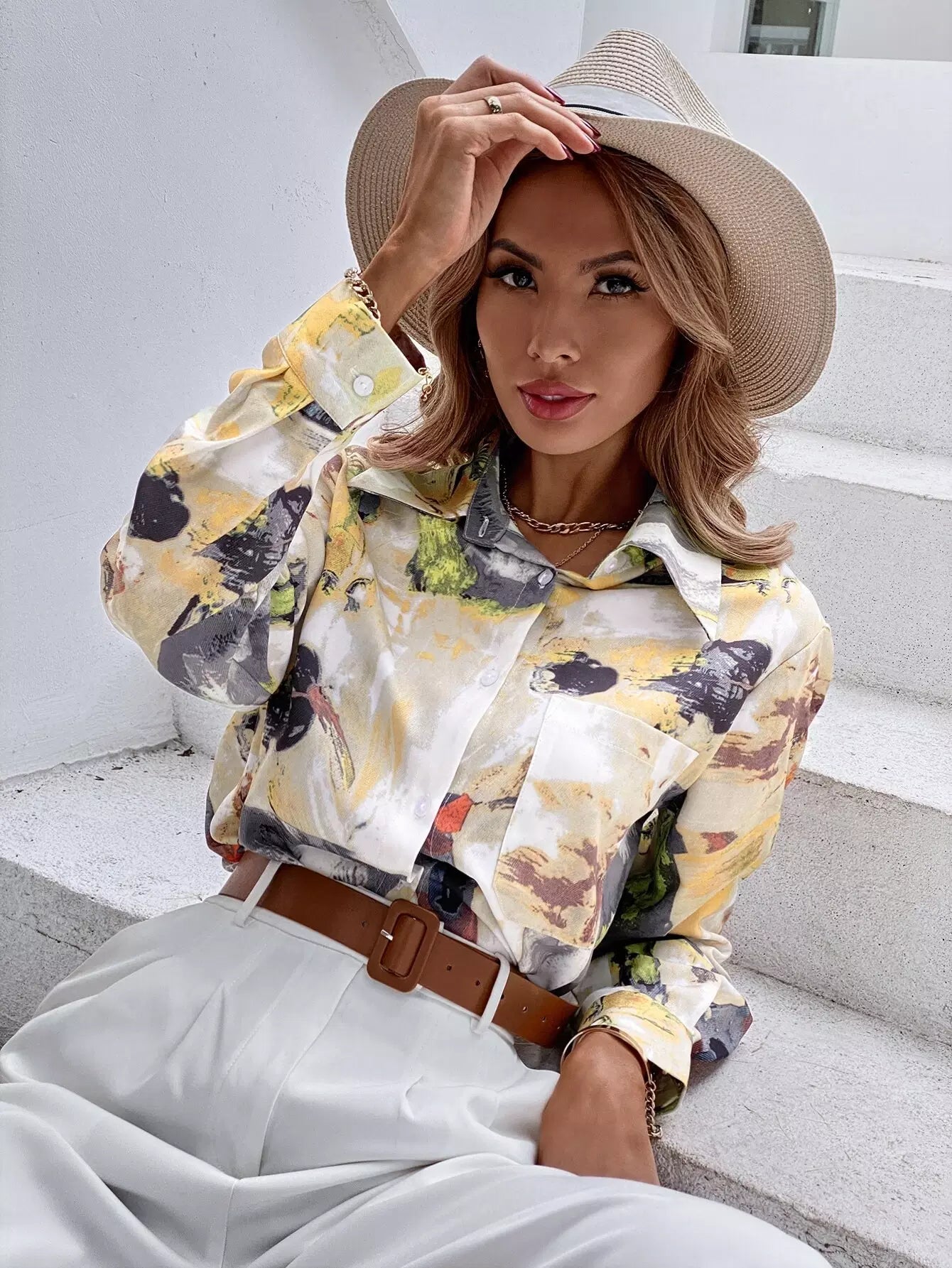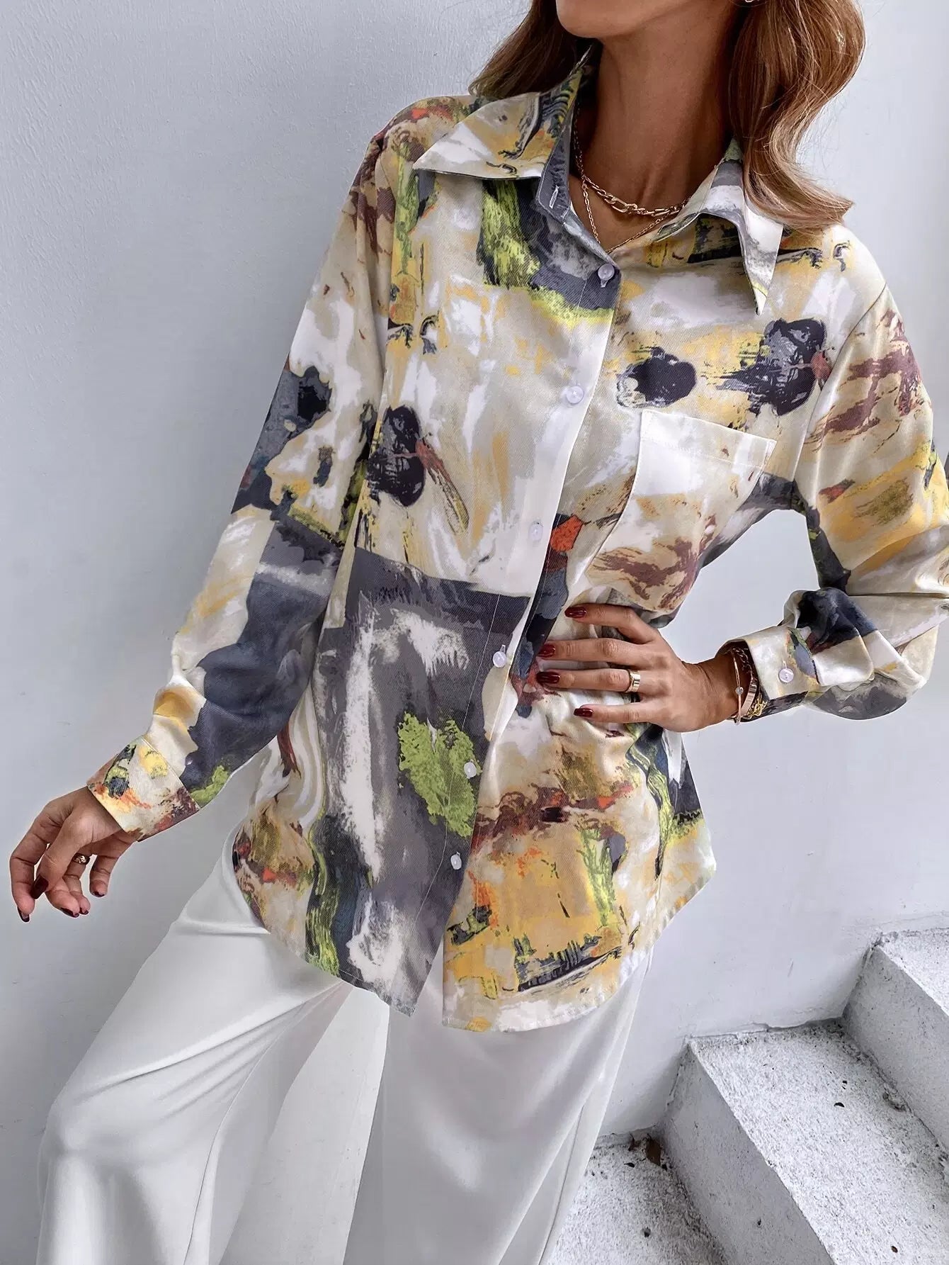 بلوزة بطبعة جرافيك مطبوعة بجيب أمامي طويل