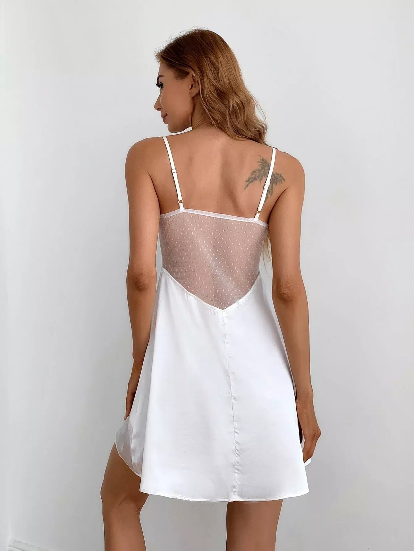 فستان سهرة من الدانتيل المخرّم المخرّم الدوبي الشبكي