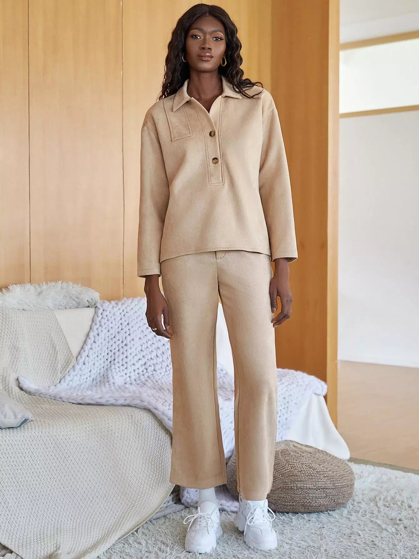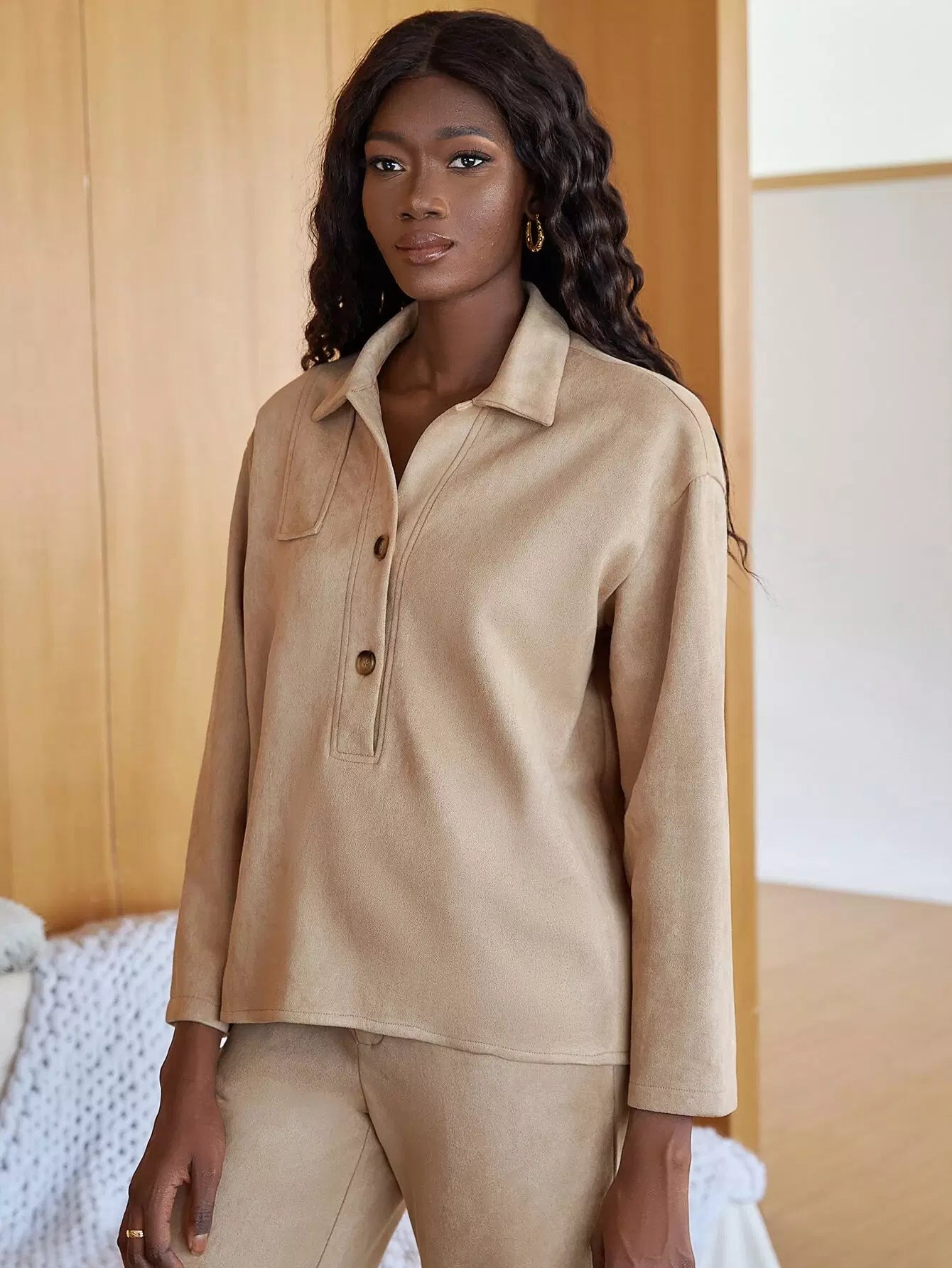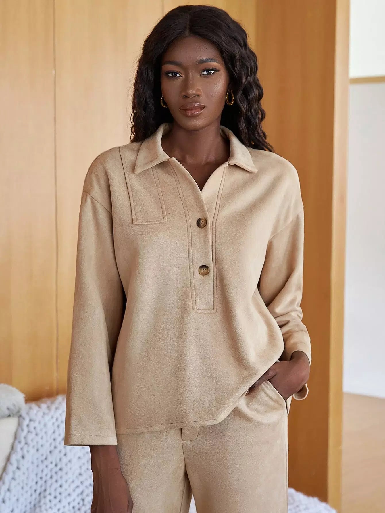 كنزة صوفية منسدلة الأكتاف بنصف زر منسدلة الكتفين