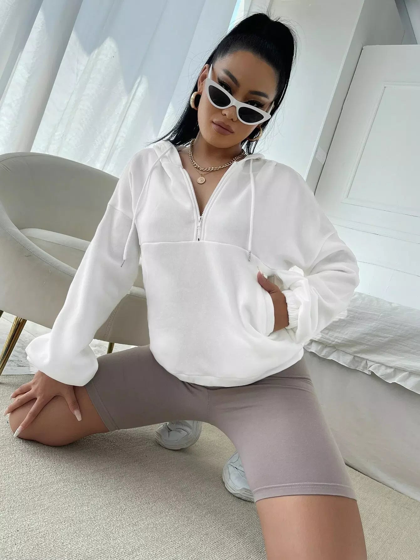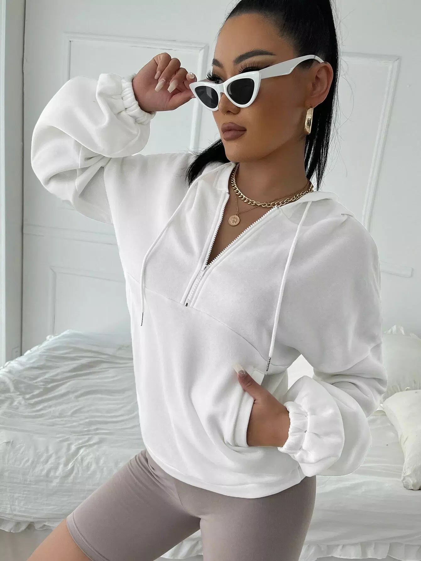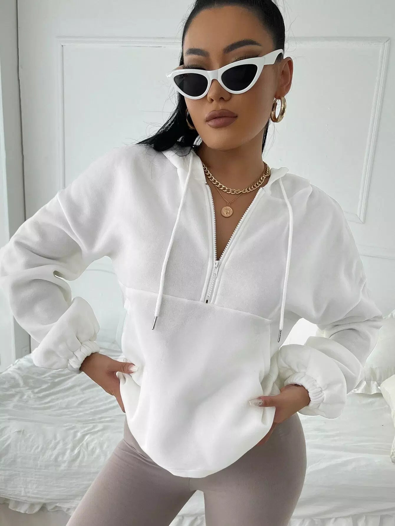هودي برباط منسدل على الكتفين بسحّاب نصف سحّاب