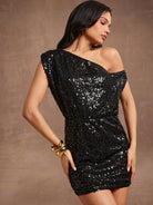 Hauture Asymmetrical One-Shoulder Semi-Sheer Sequin Mini Dress
