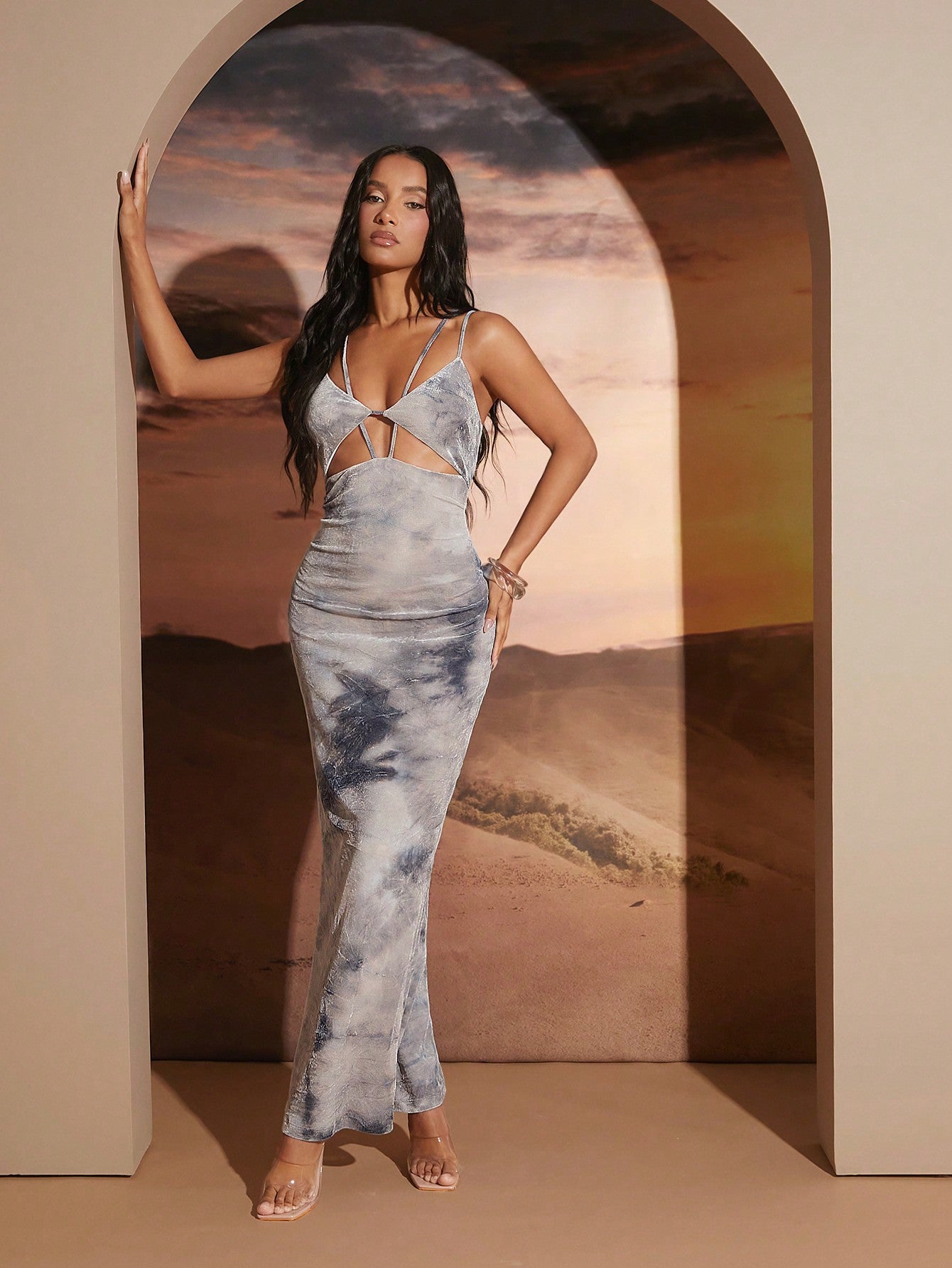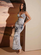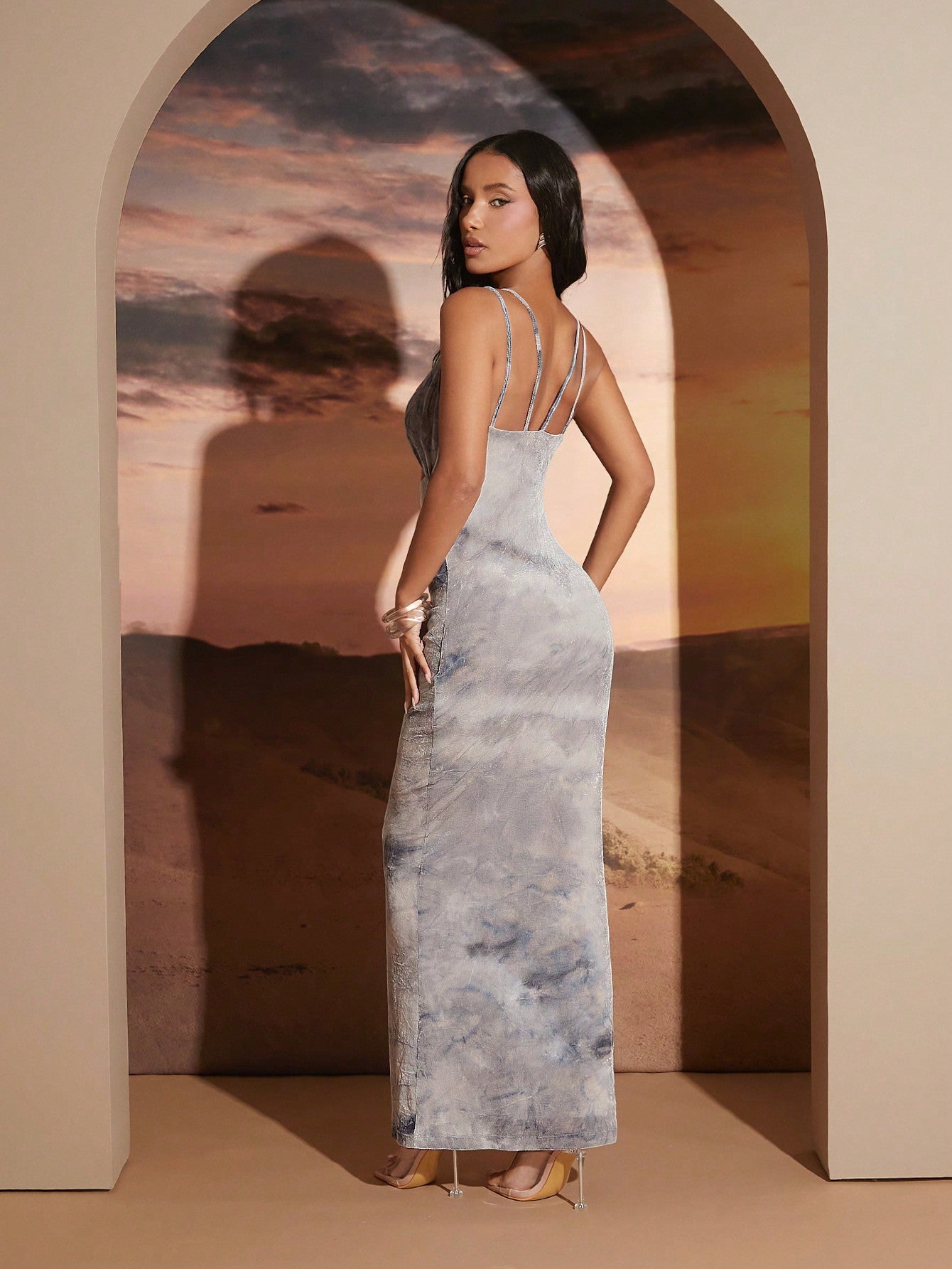 فستان نسائي يومي بسيط بأشرطة رفيعة مطبوع عليه عشوائيًا من Hauture