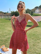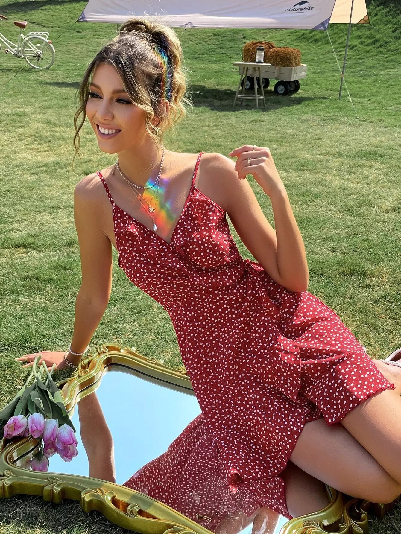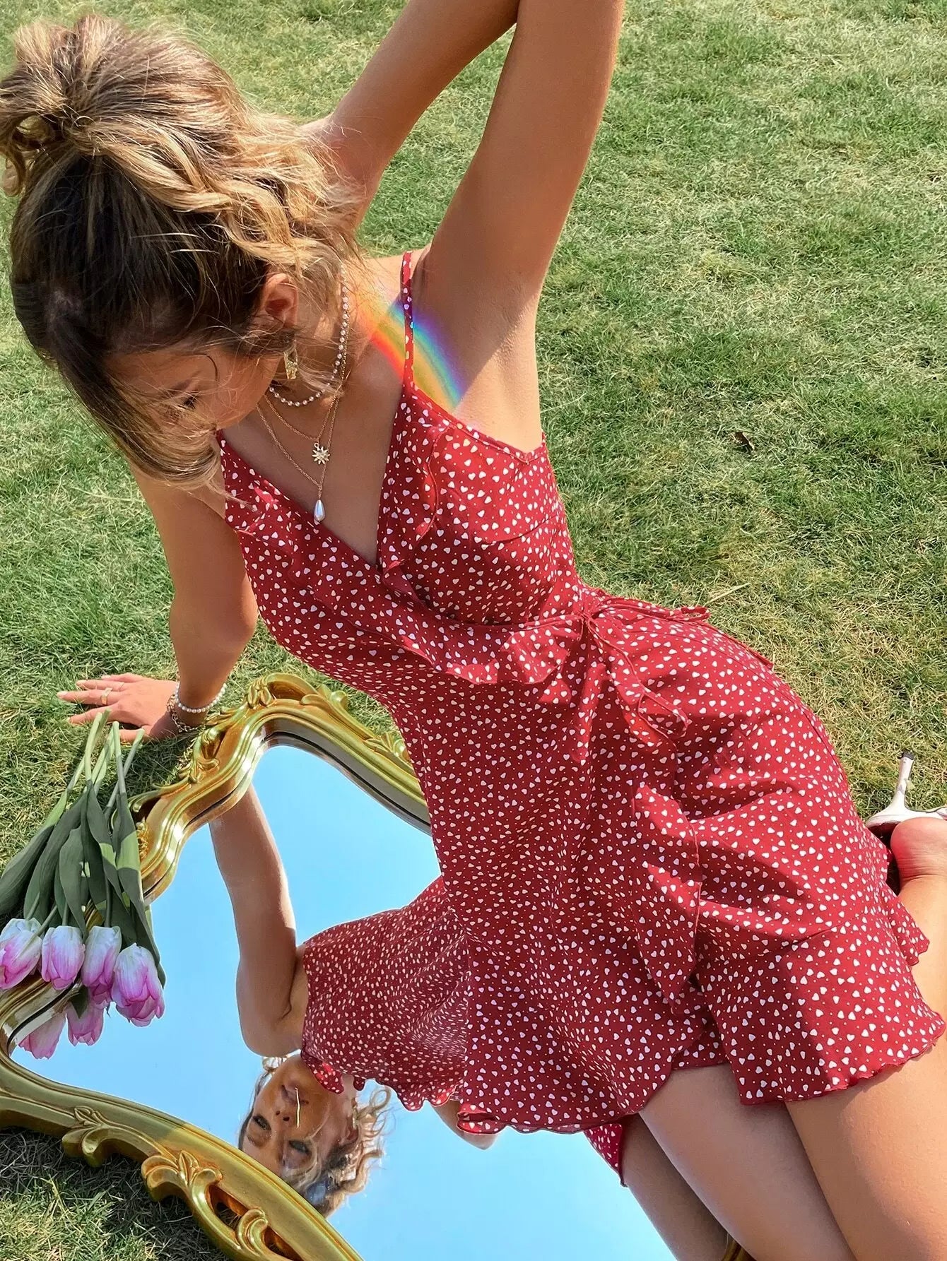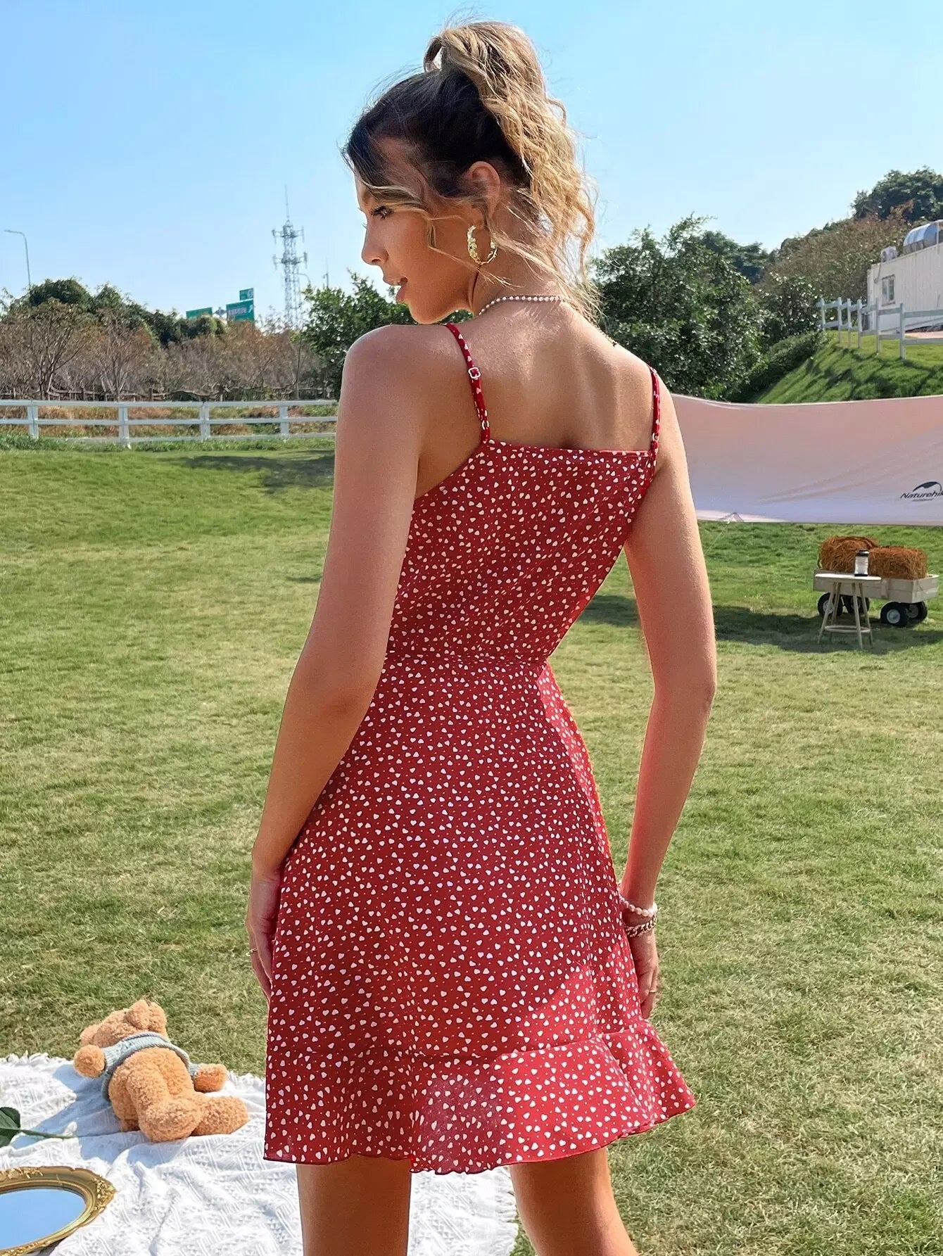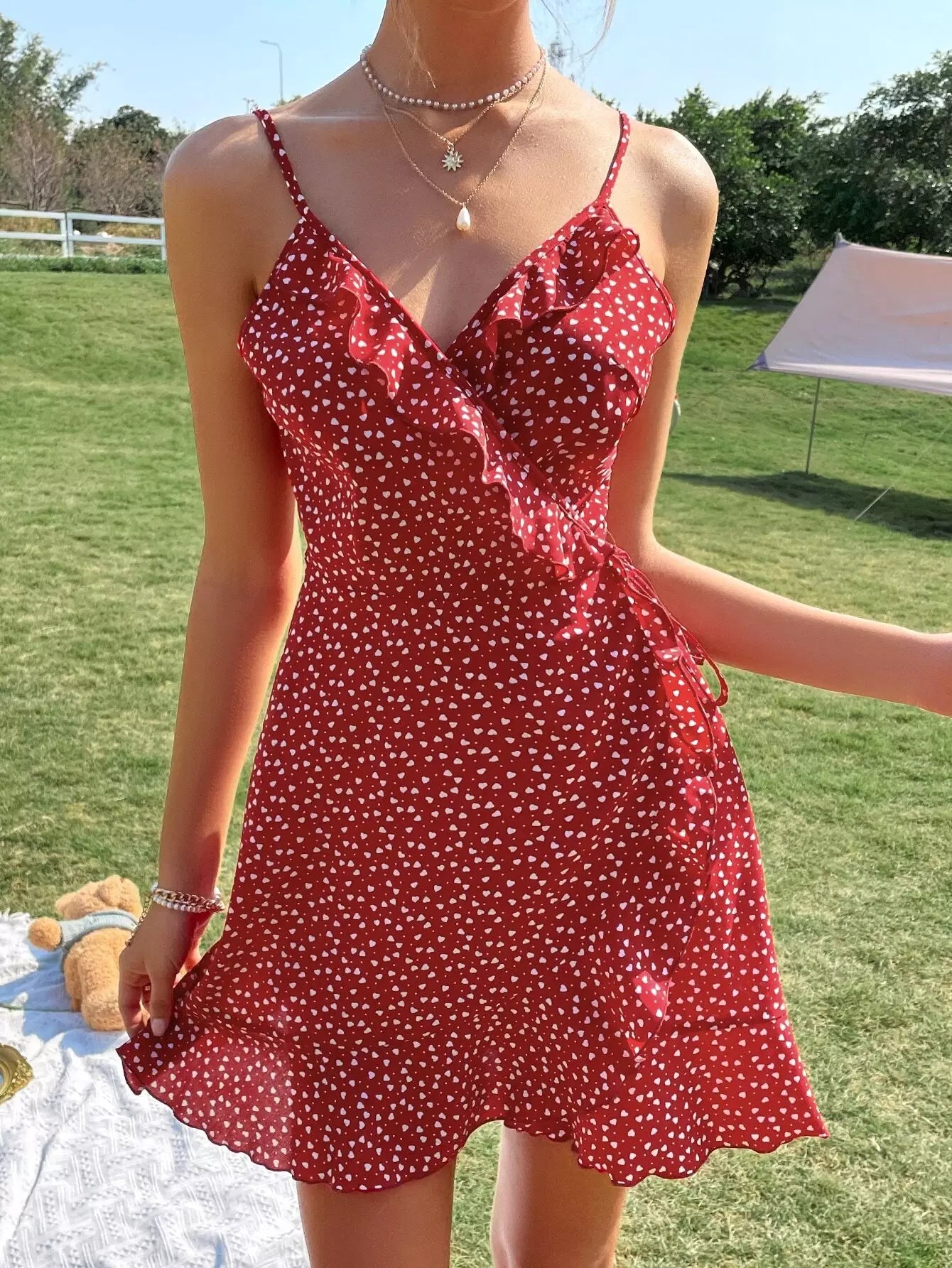 فستان كامي ملفوف بحواف مكشكشة وطبعة قلب