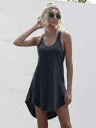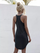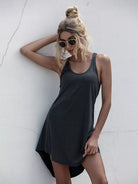 فستان بدون أكمام سادة مرتفع منخفض