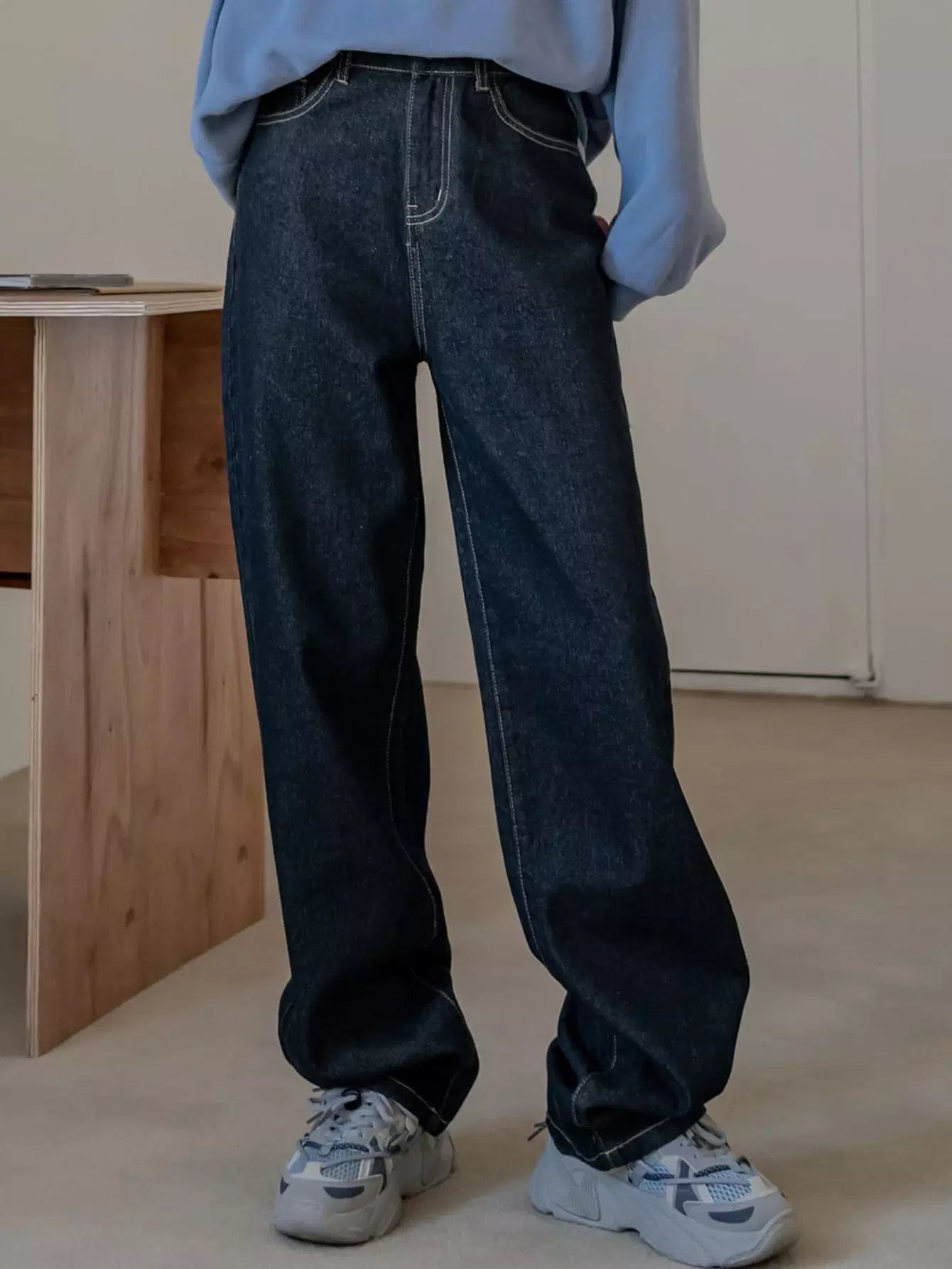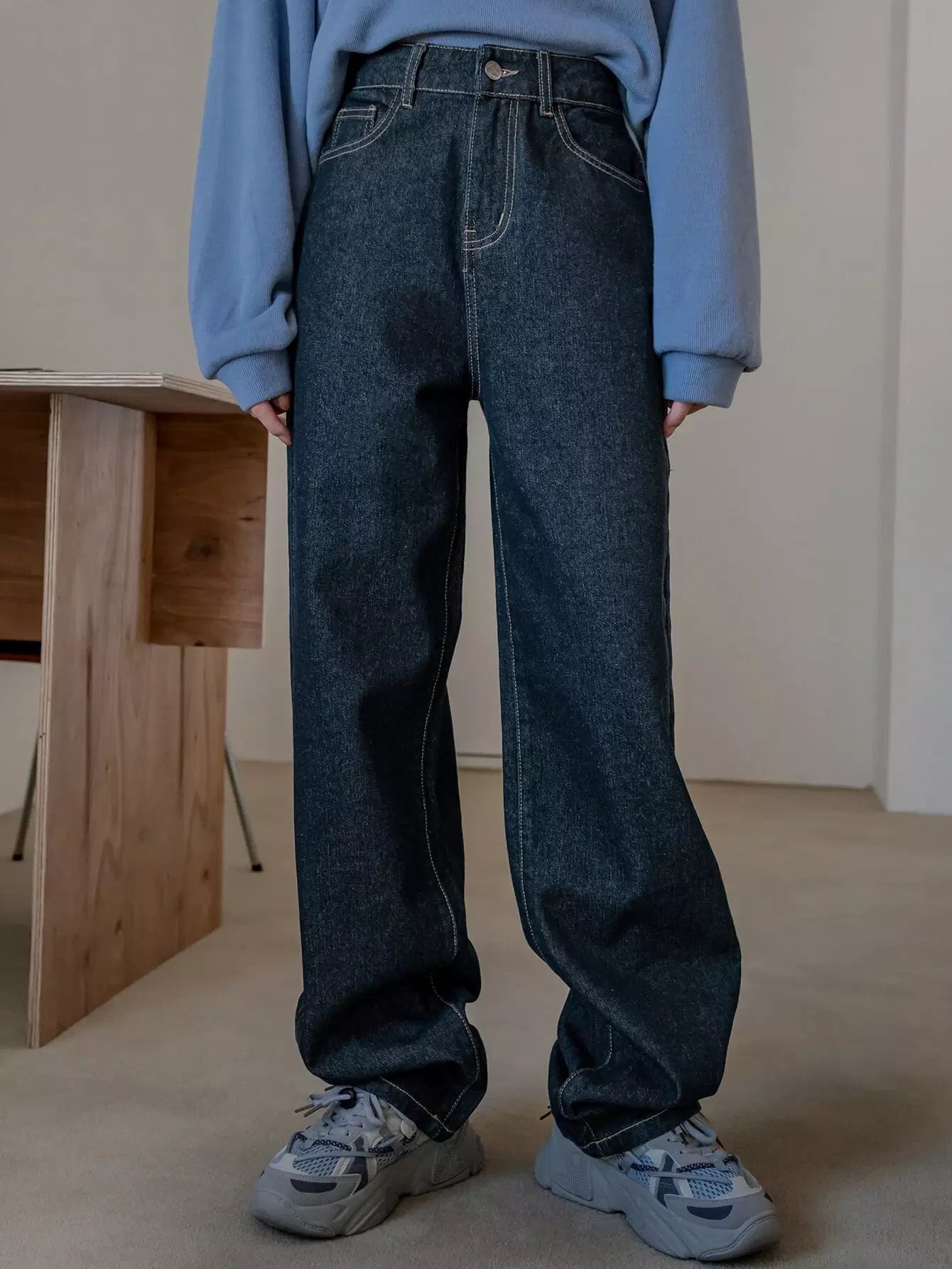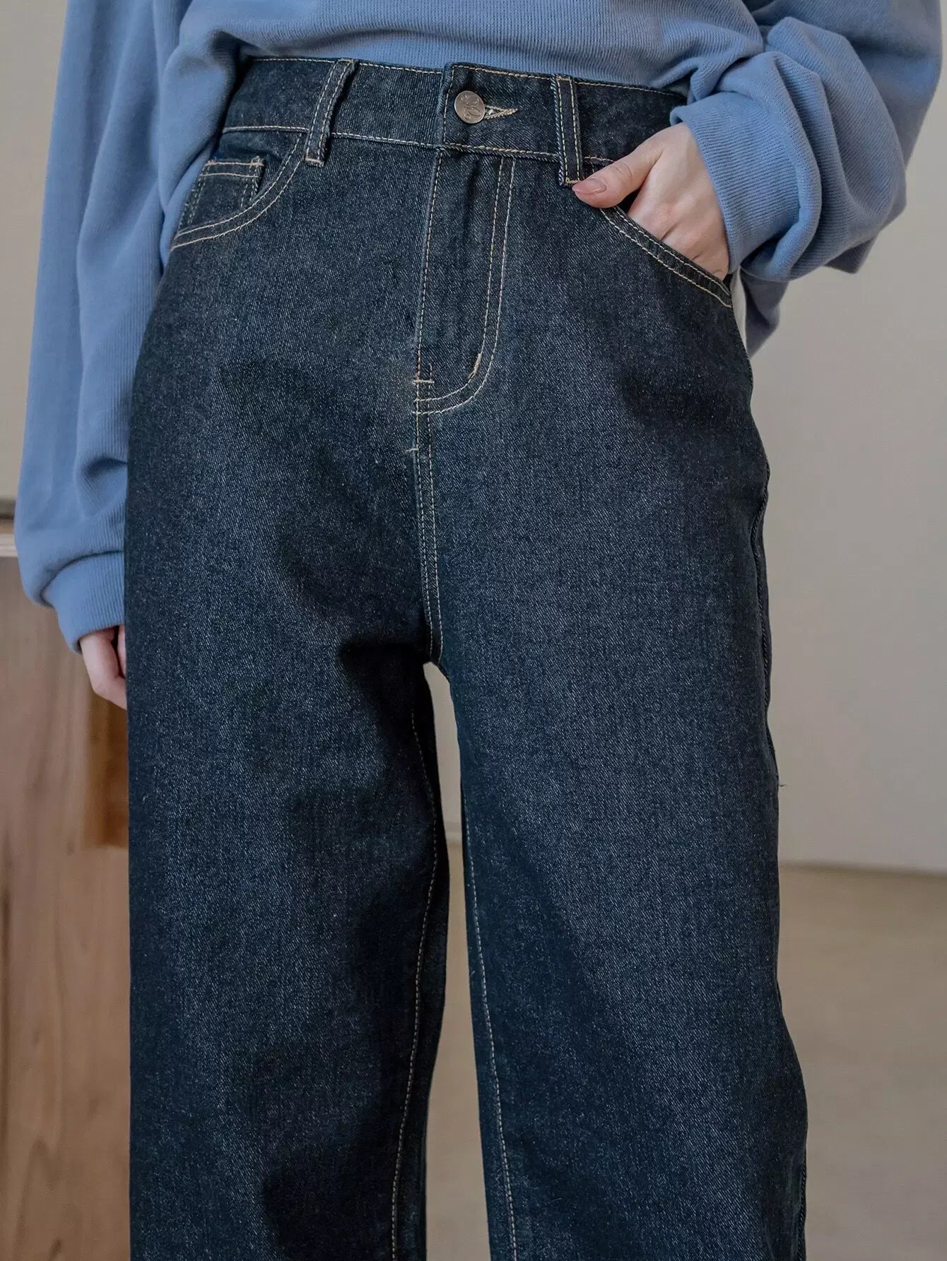 بنطال جينز بجيب مائل بخصر مرتفع