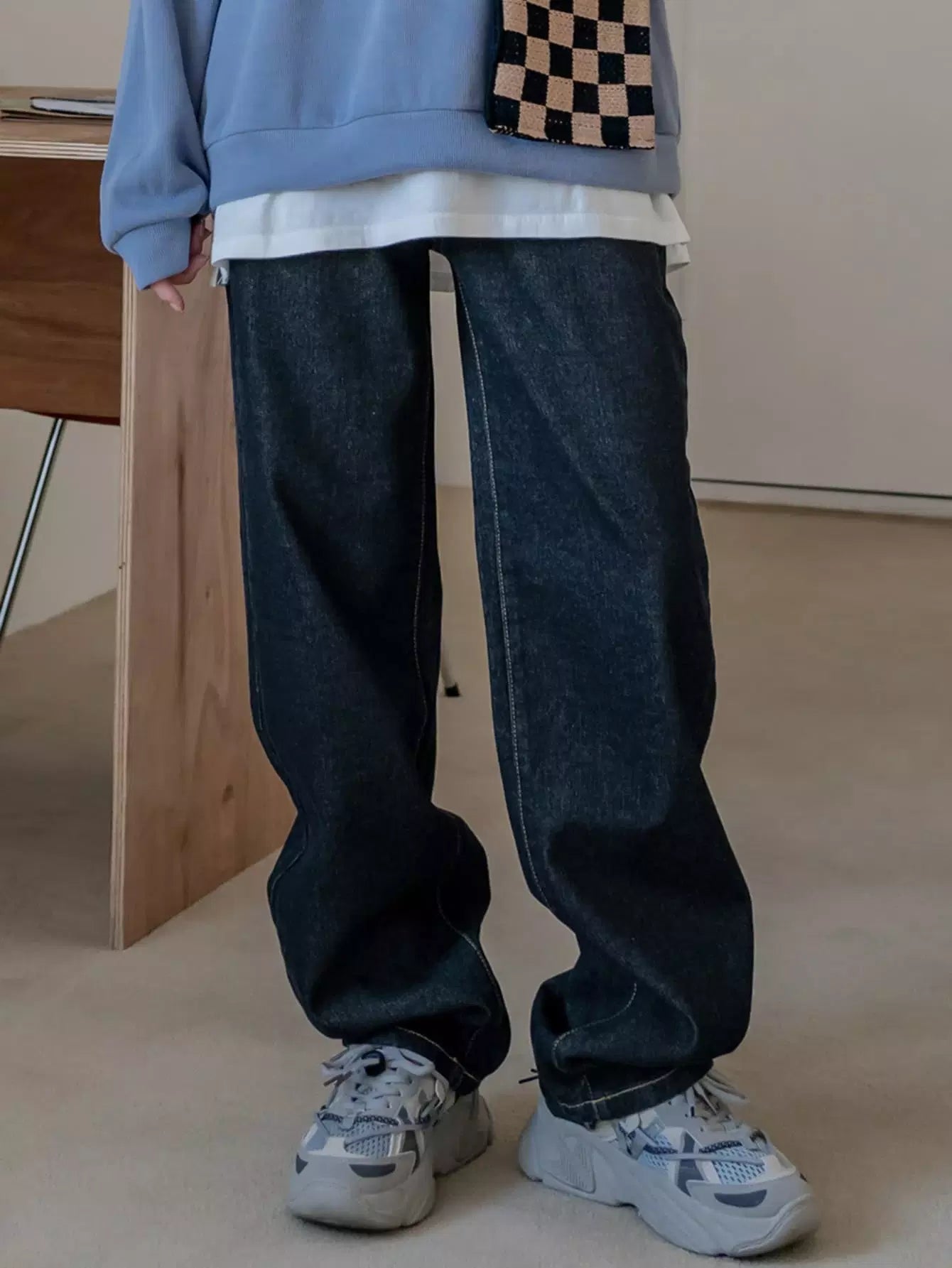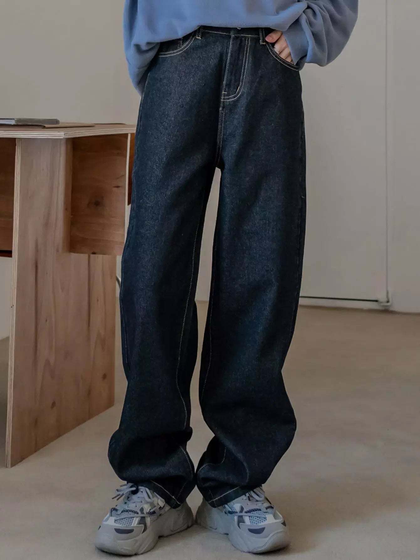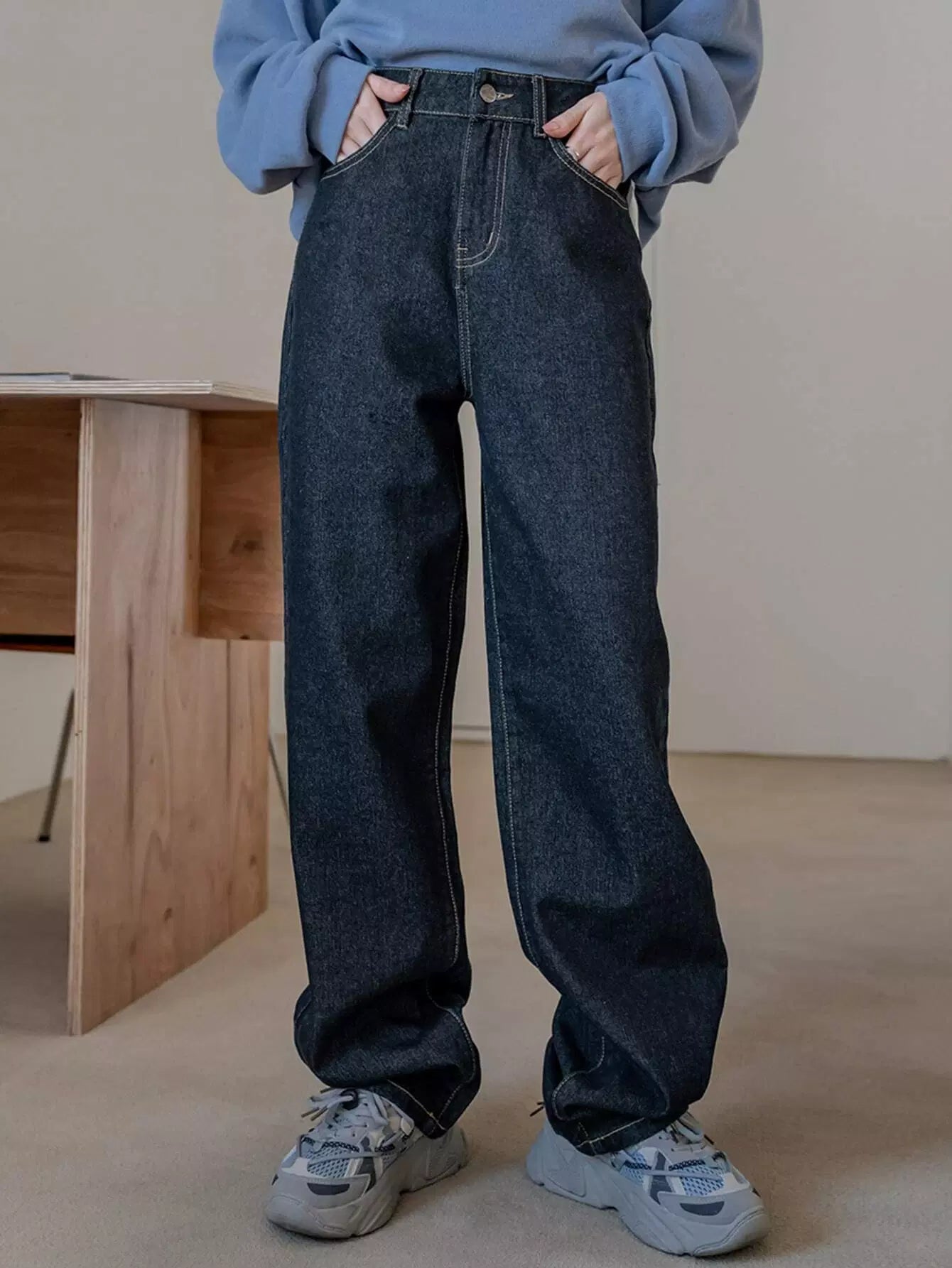 بنطال جينز بجيب مائل بخصر مرتفع