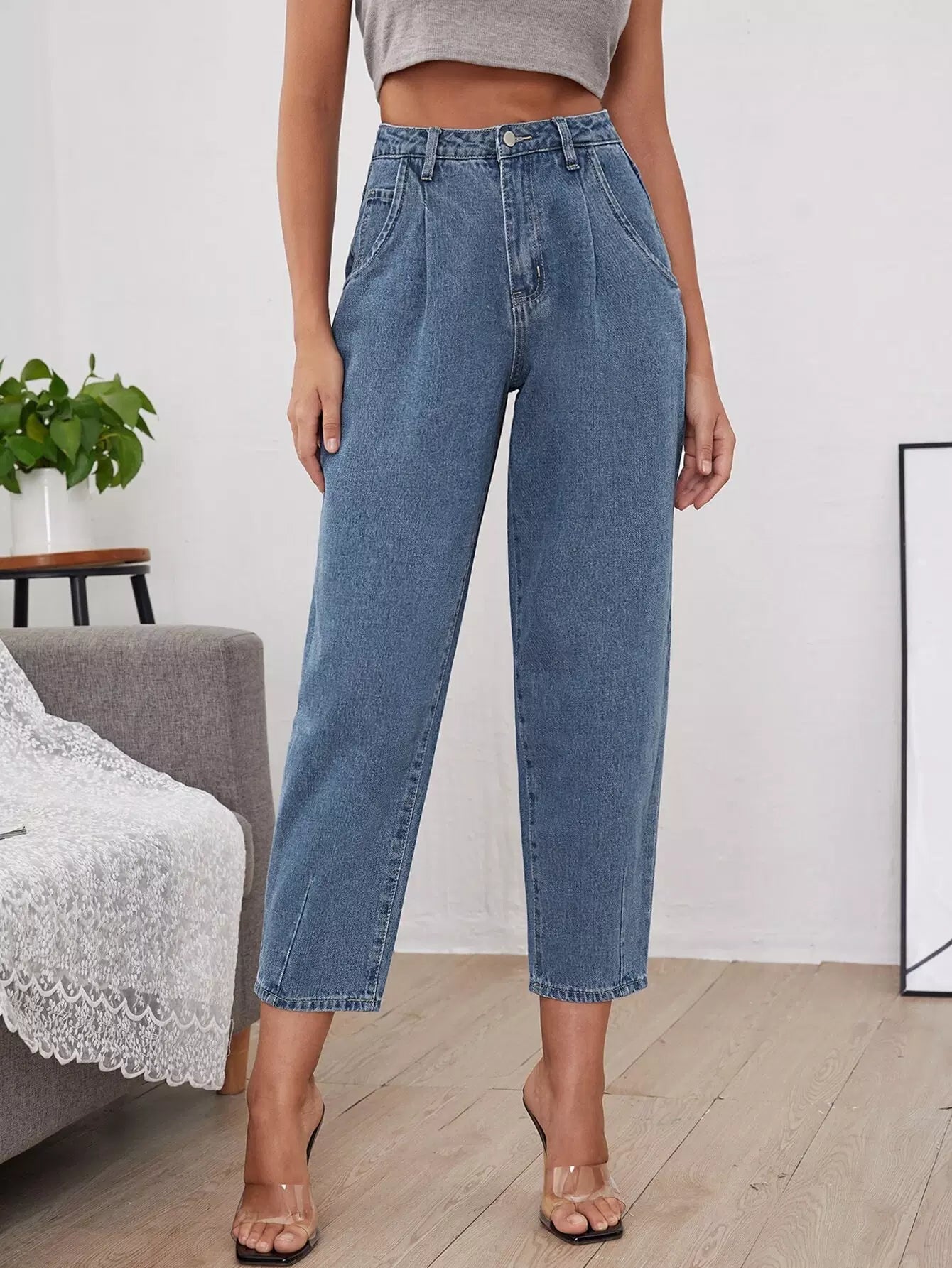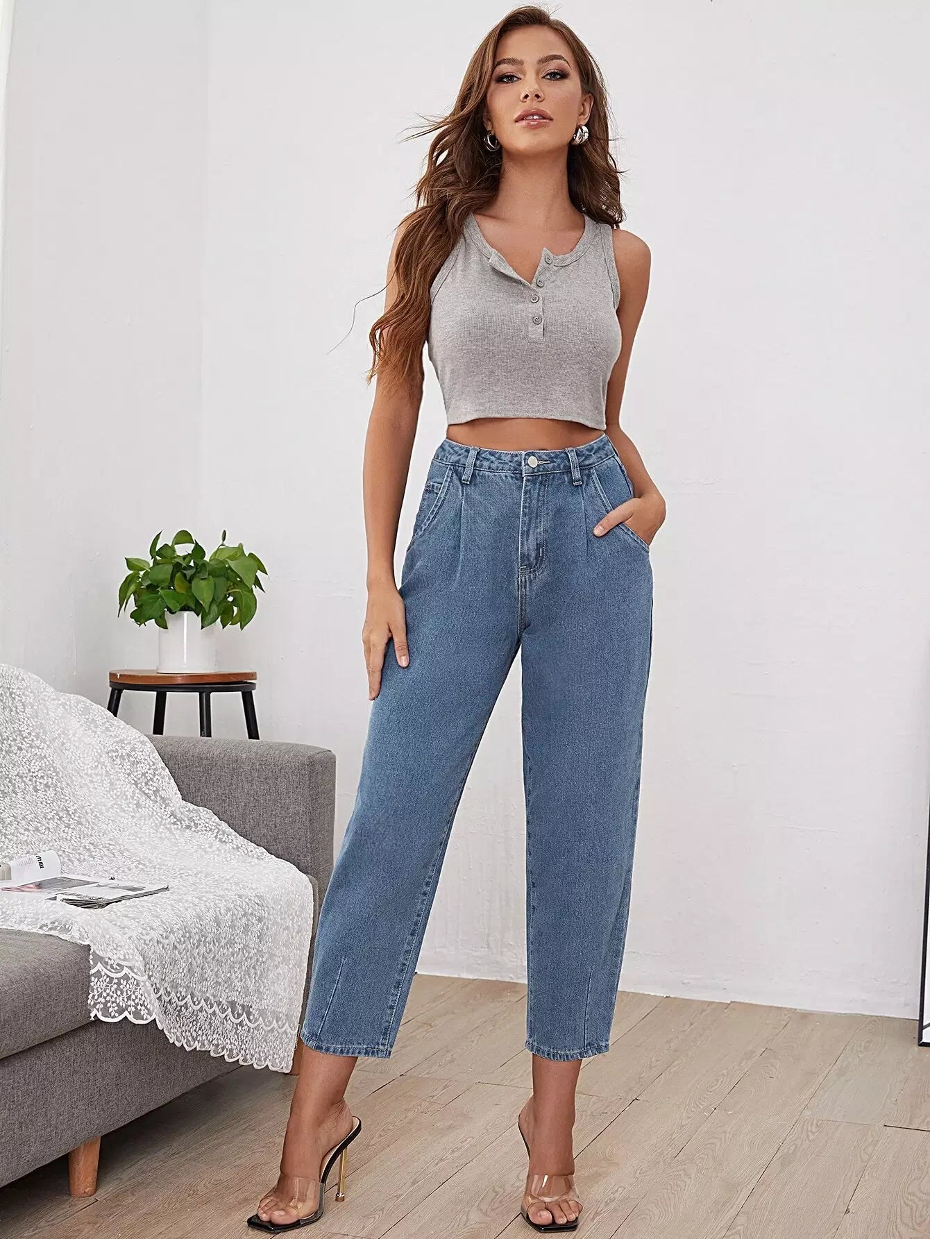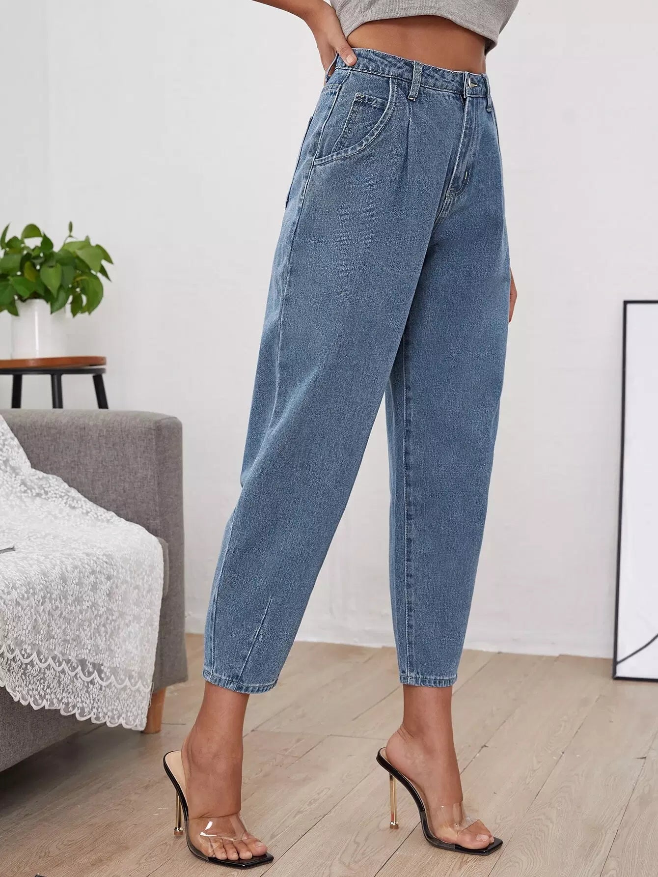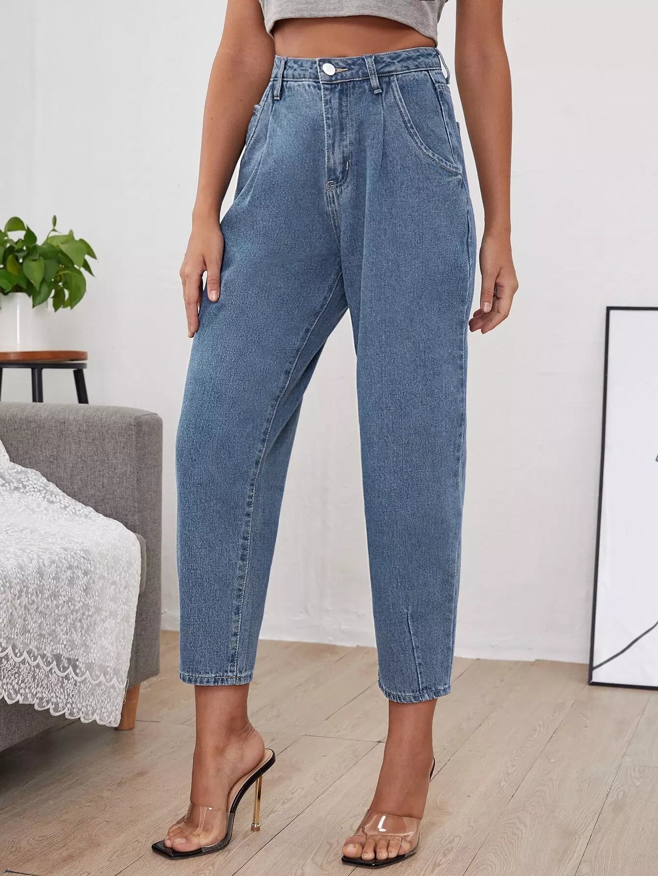 بنطلون جينز بخصر عالٍ مناسب للأمهات