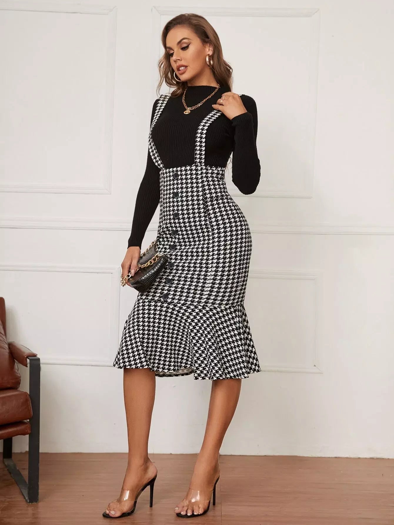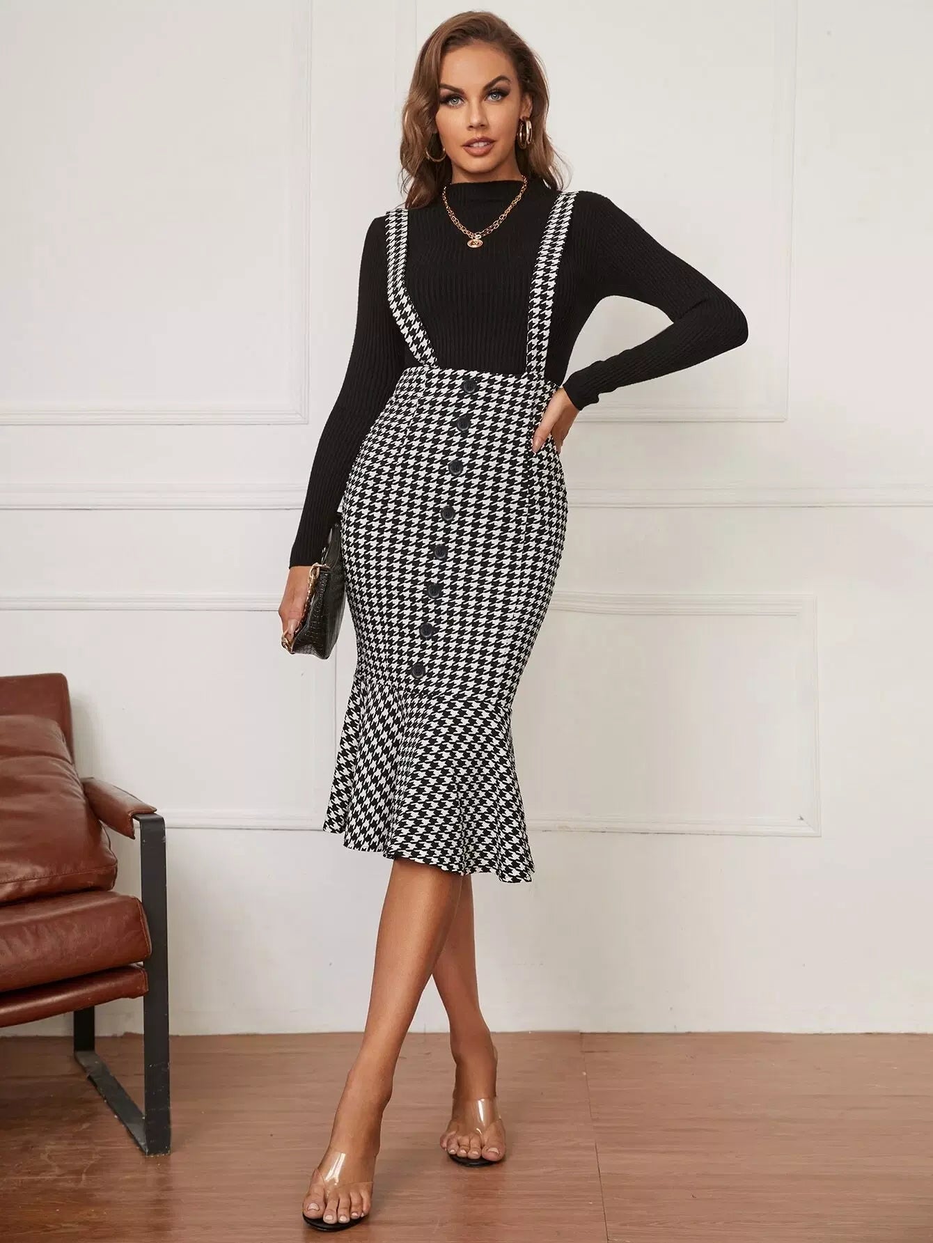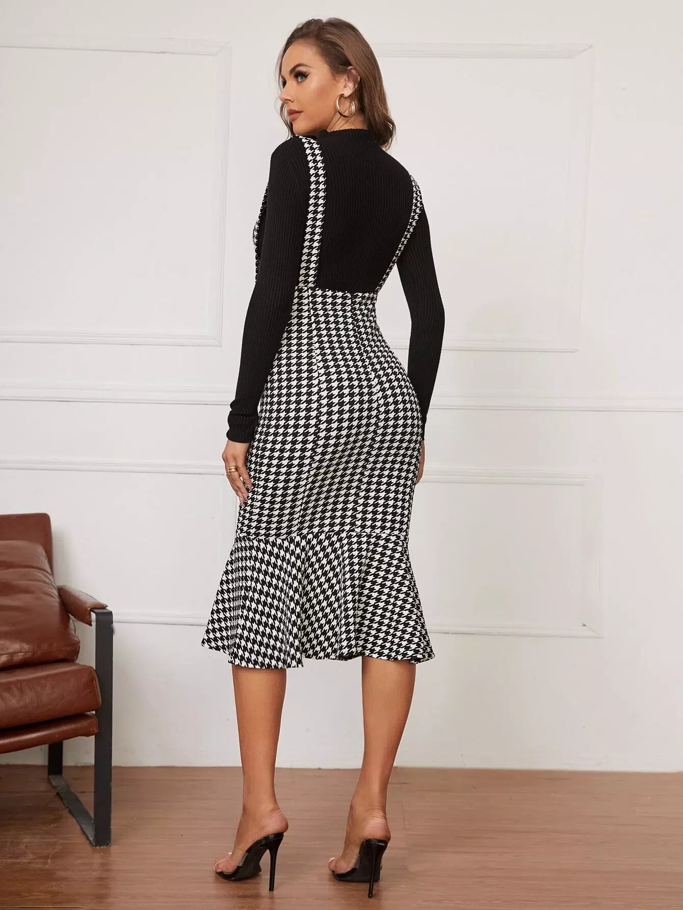 تنورة بينافور بحاشية حورية البحر بنقشة مربعات
