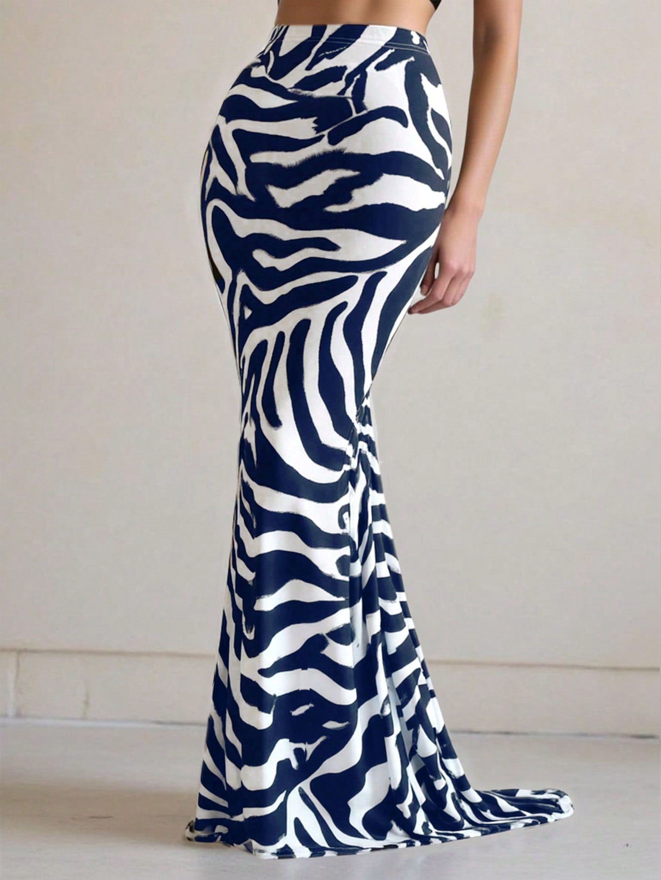 INAWLY Women Contrast Color All-Over Print Long Casual Skirt