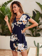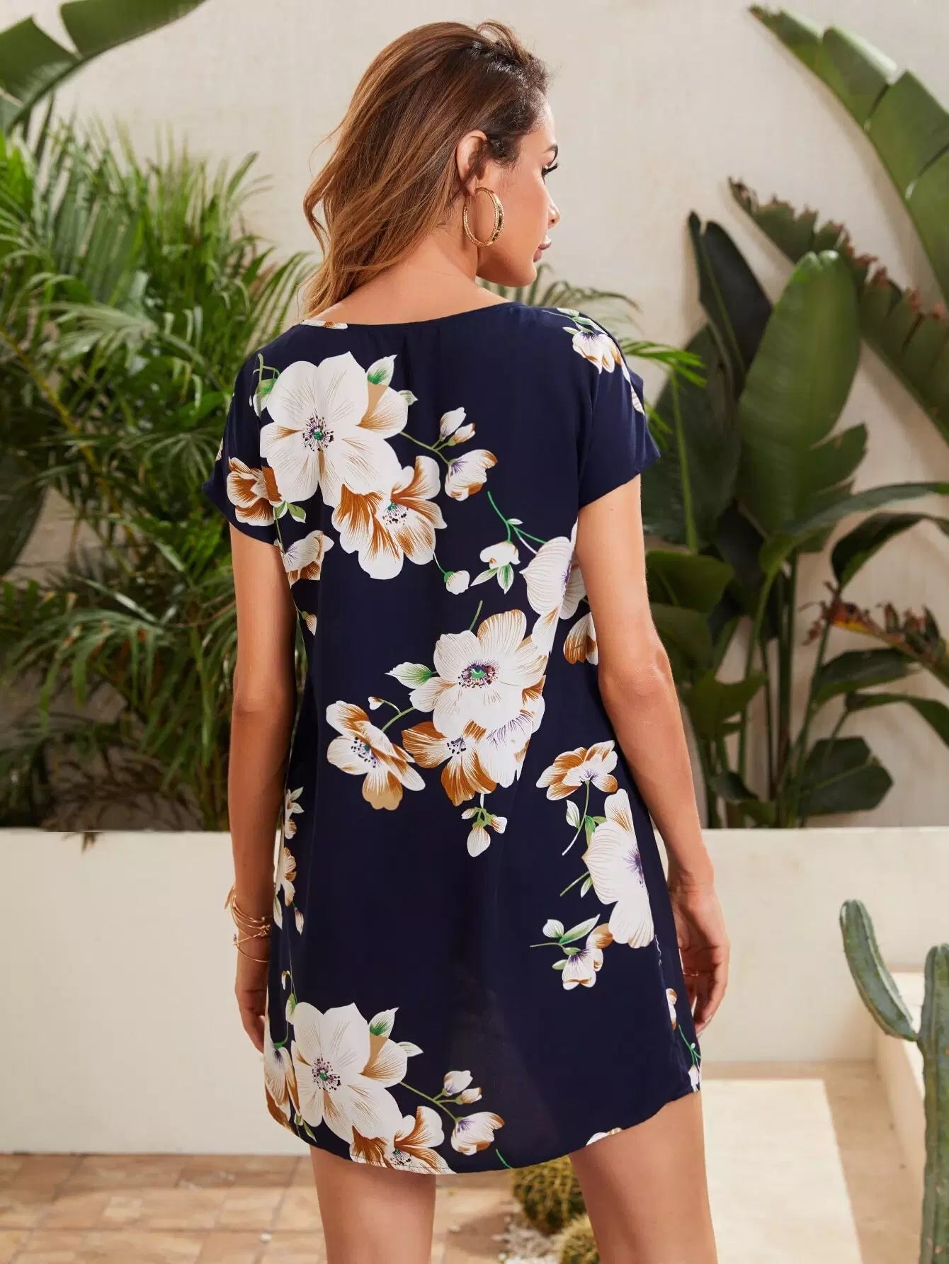 فستان زهري بفتحة عنق برقبة بفتحة عنق وأكمام على شكل باتوينغ
