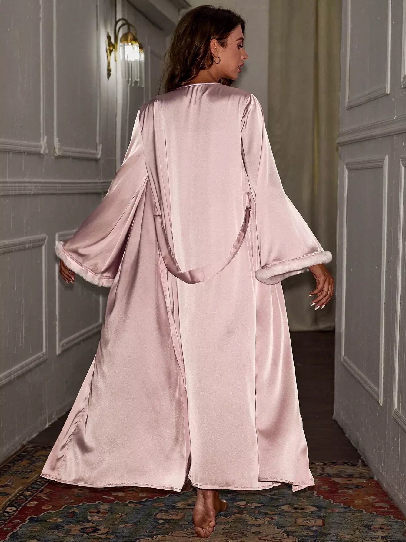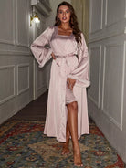 فستان نوم كامي بعقدة جانبية مع رداء بدون حزام