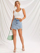بلوزة محبوكة بحزام بحياكة على شكل عقدة