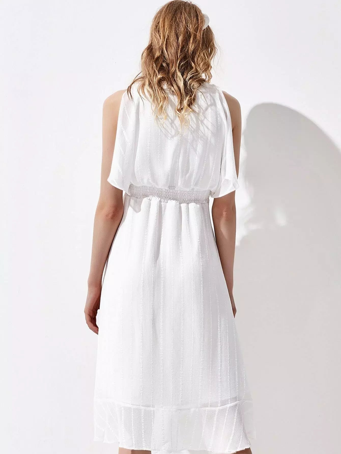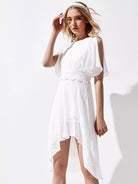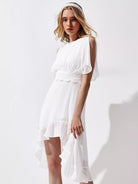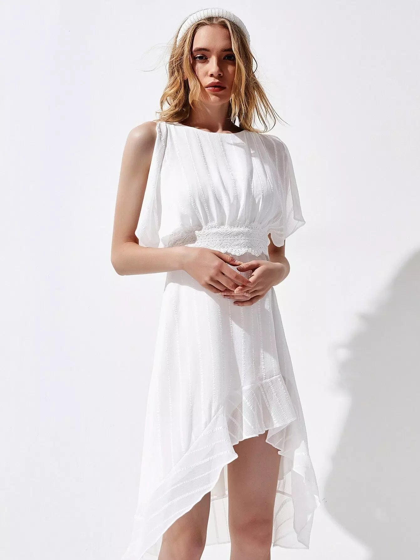 فستان بحاشية غير متناسقة بتفاصيل من الدانتيل