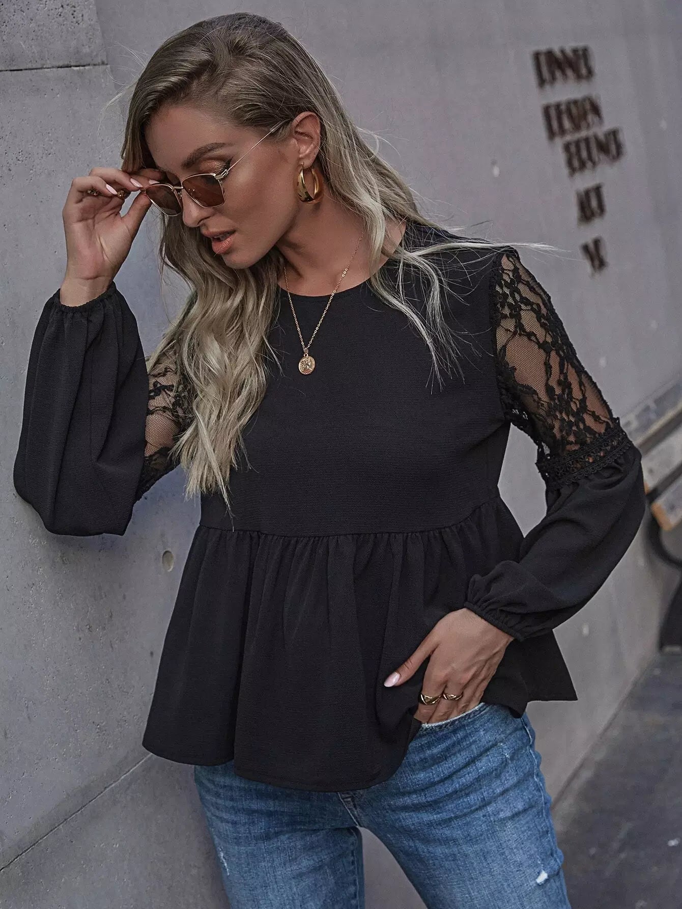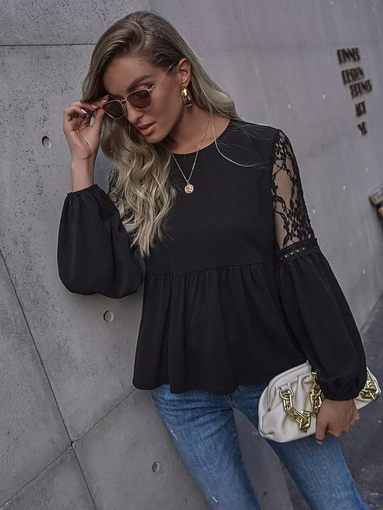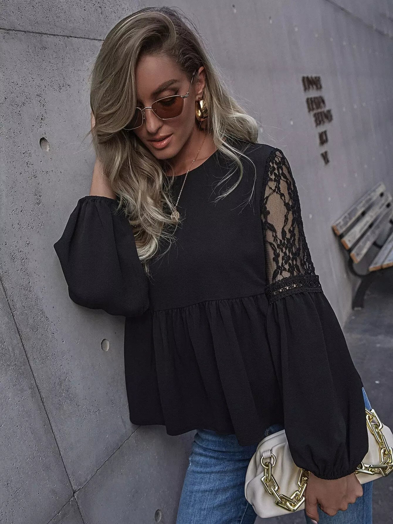 بلوزة بأكمام من الدانتيل بأكمام من الدانتيل