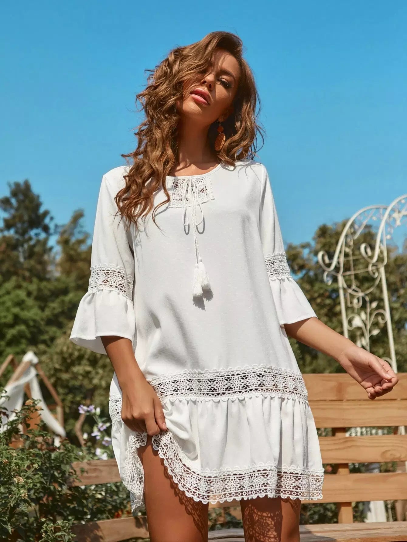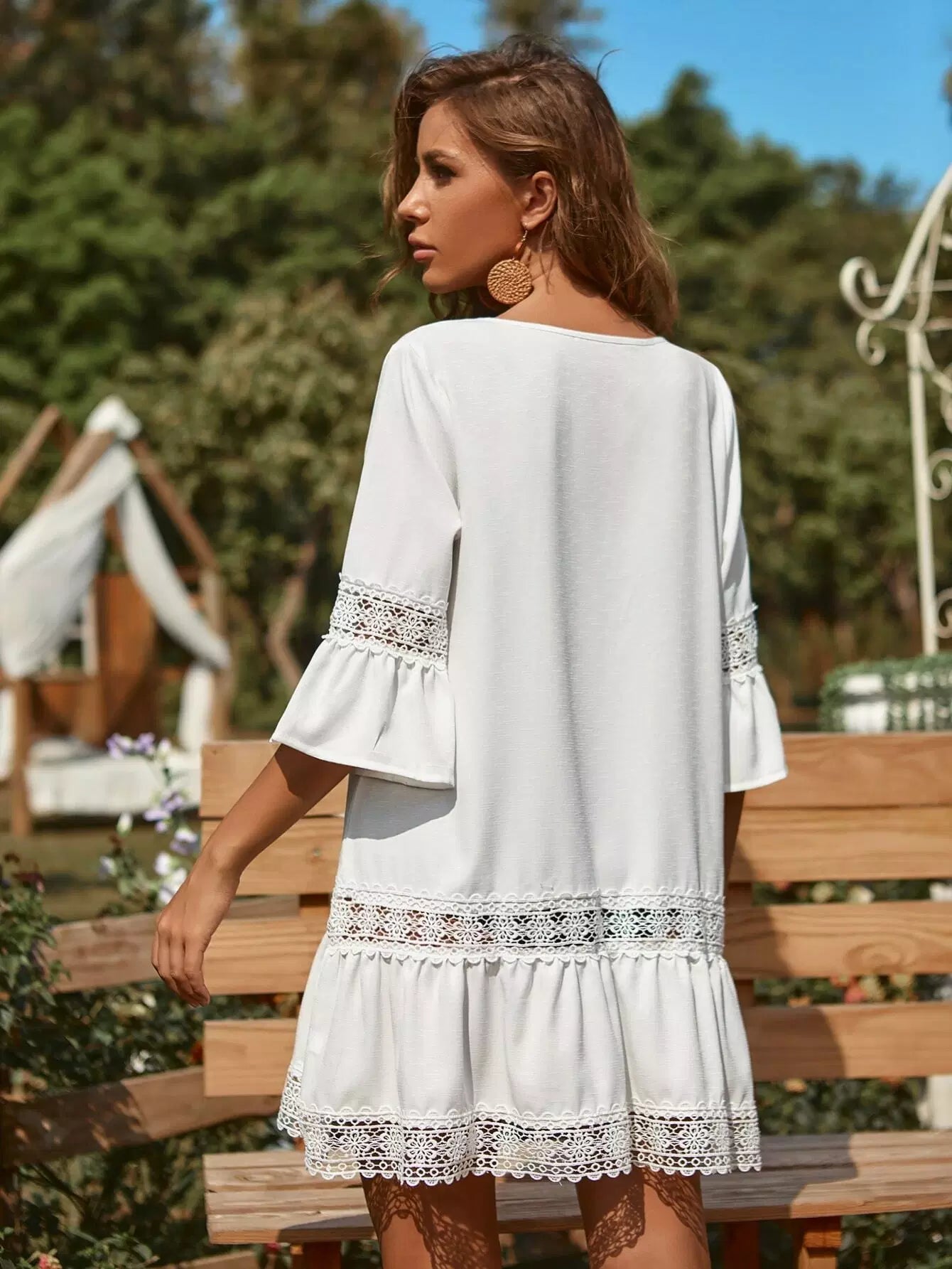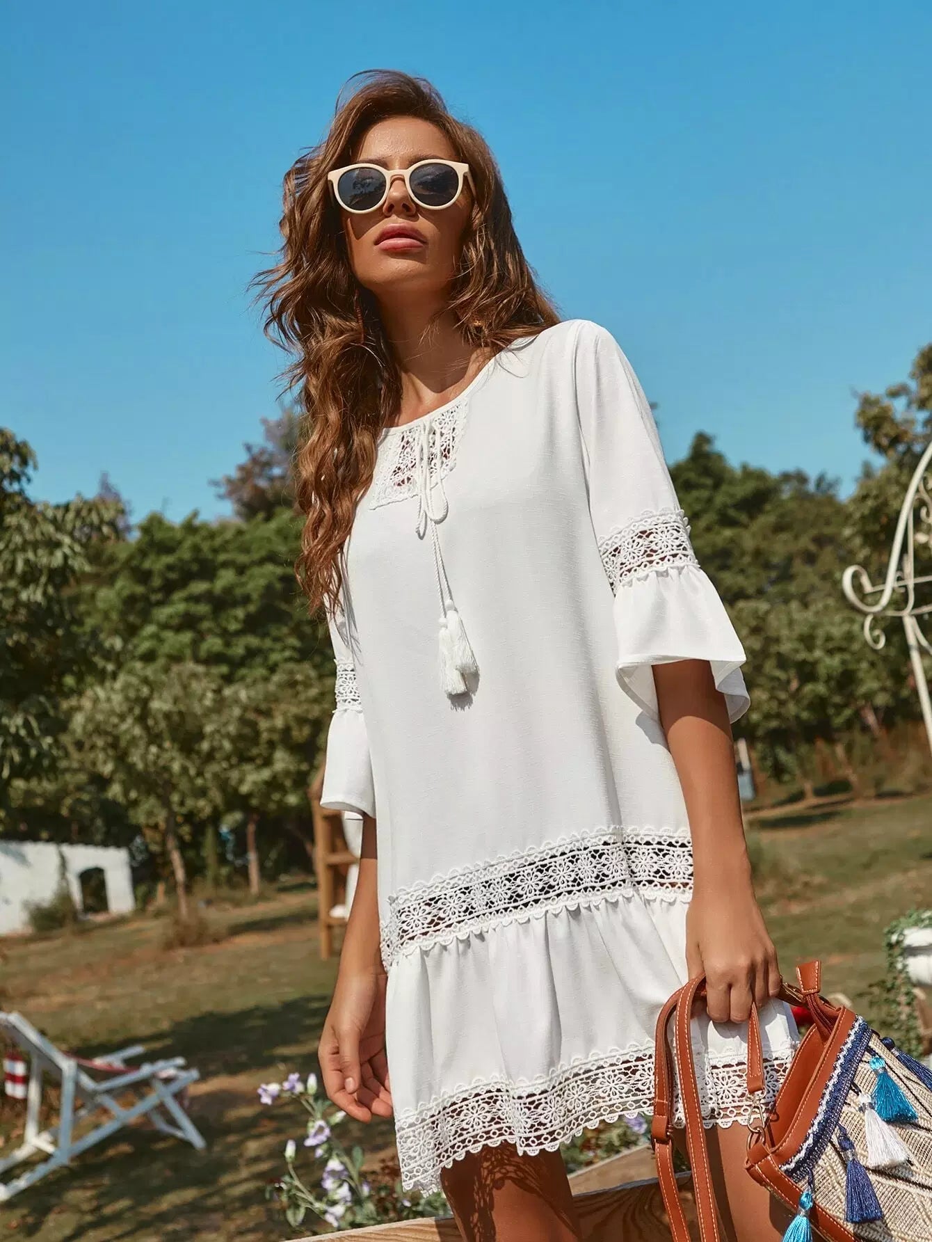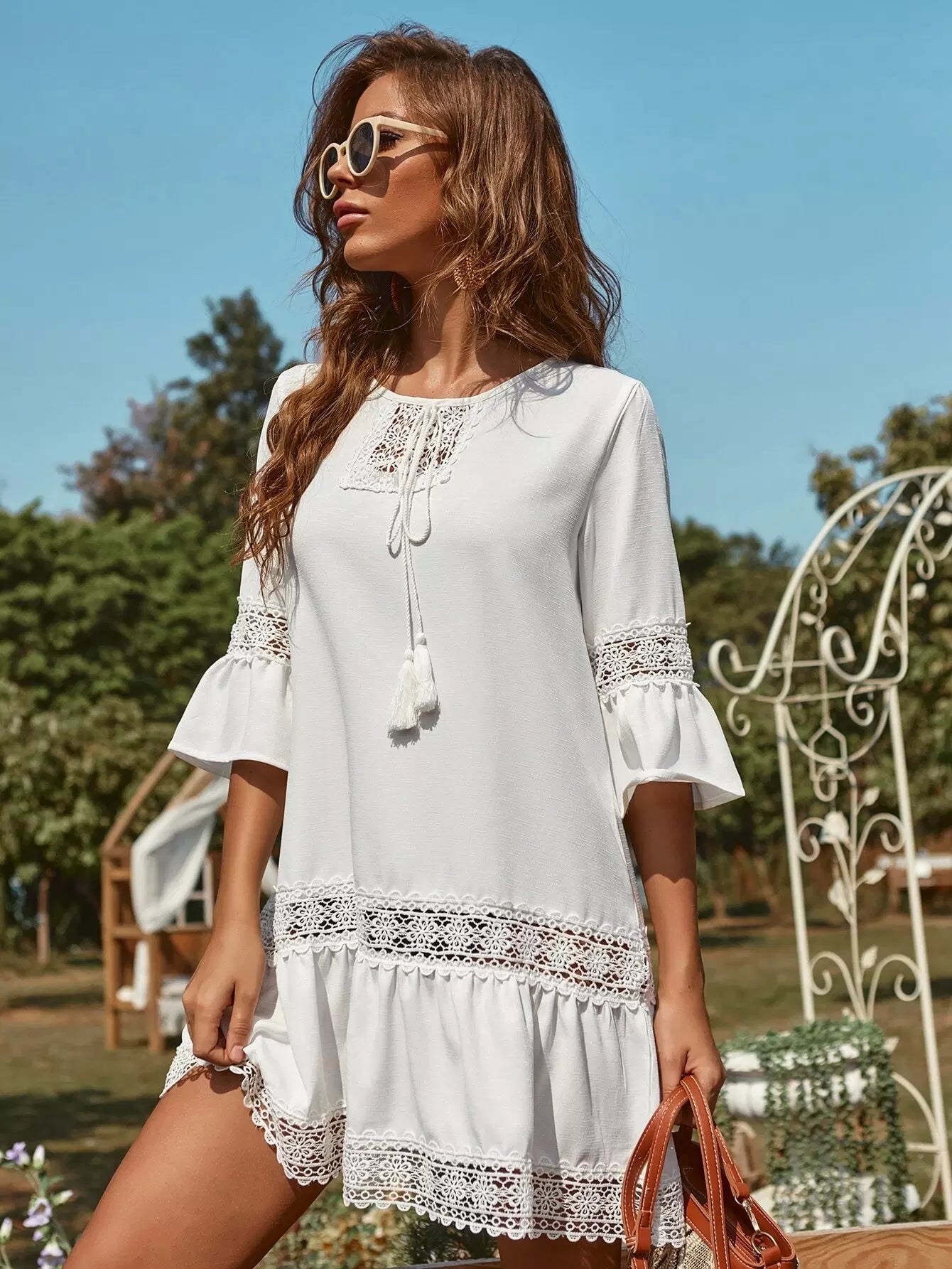 فستان بأكمام من الدانتيل بأكمام منفوشة من الدانتيل