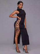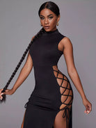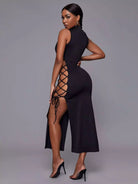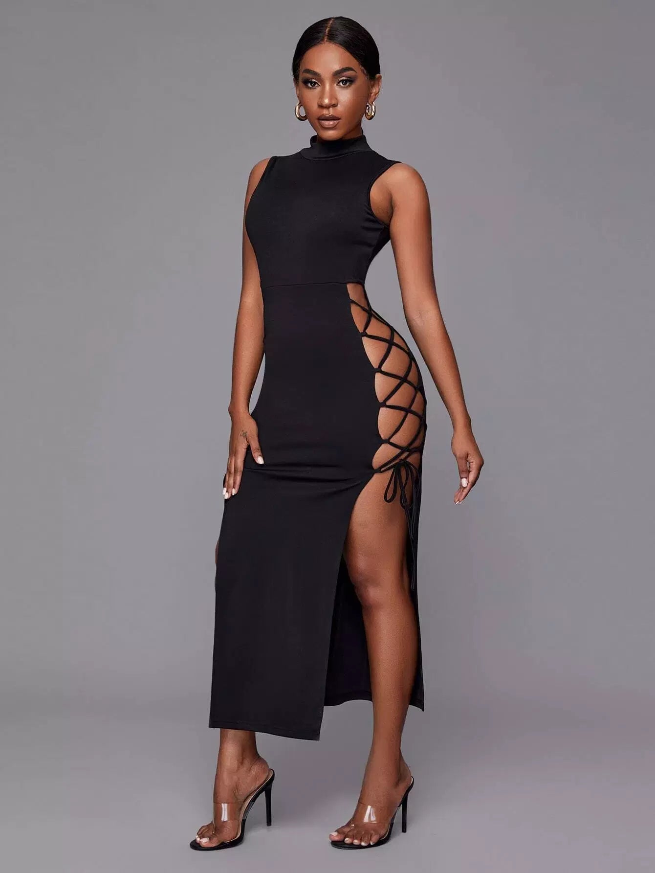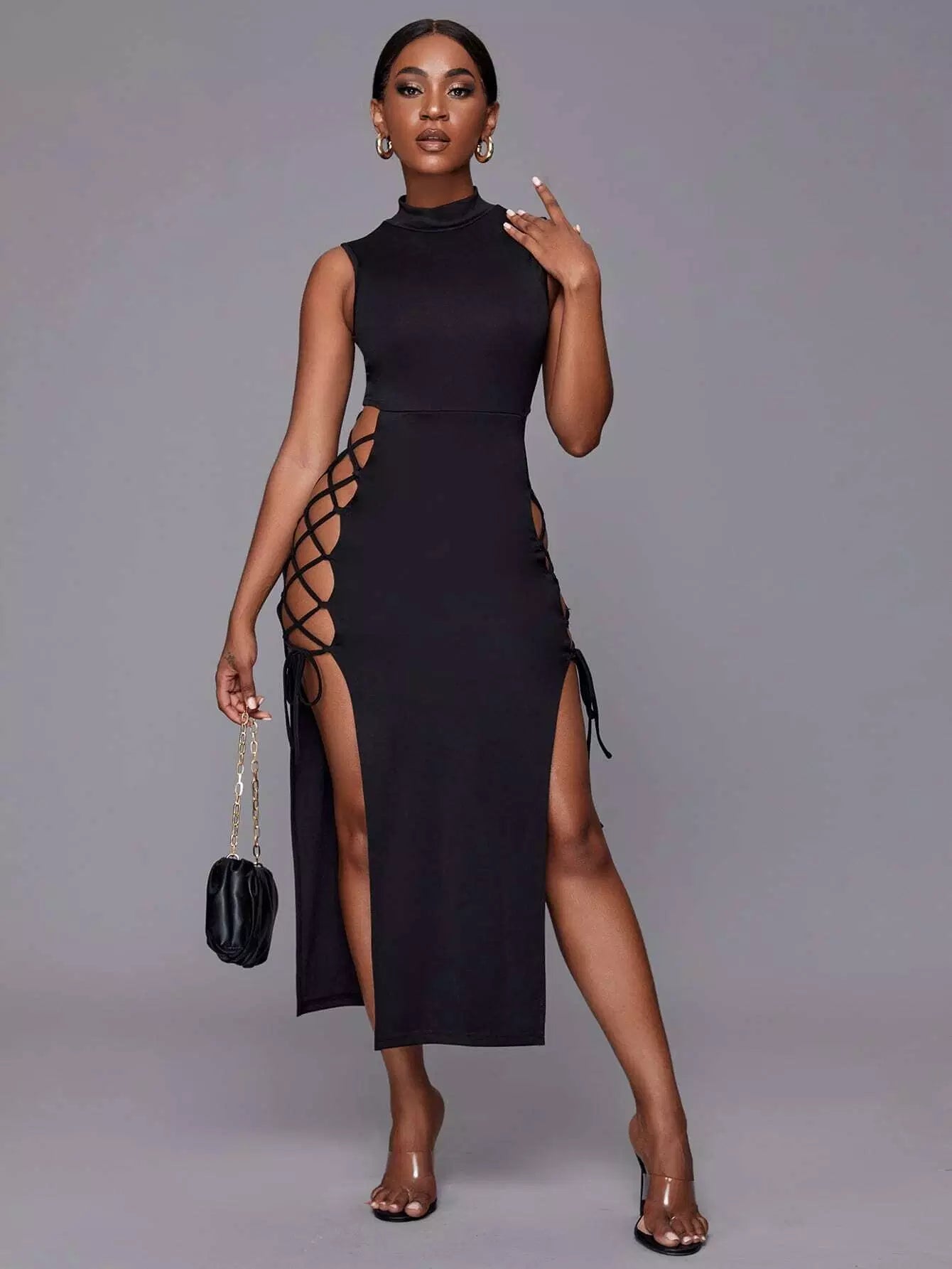 فستان بدون أكمام بفتحة جانبية منسدلة على الفخذين