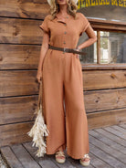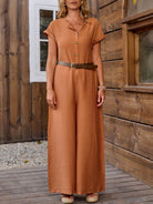 LanaWest Women's Country Music Festival Linen V-Neck Short Sleeve Half Zip Front Jumpsuit, Orange