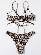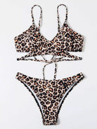 بذلة سباحة بيكيني ملفوفة على شكل جلد النمر المتقاطع