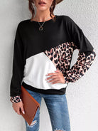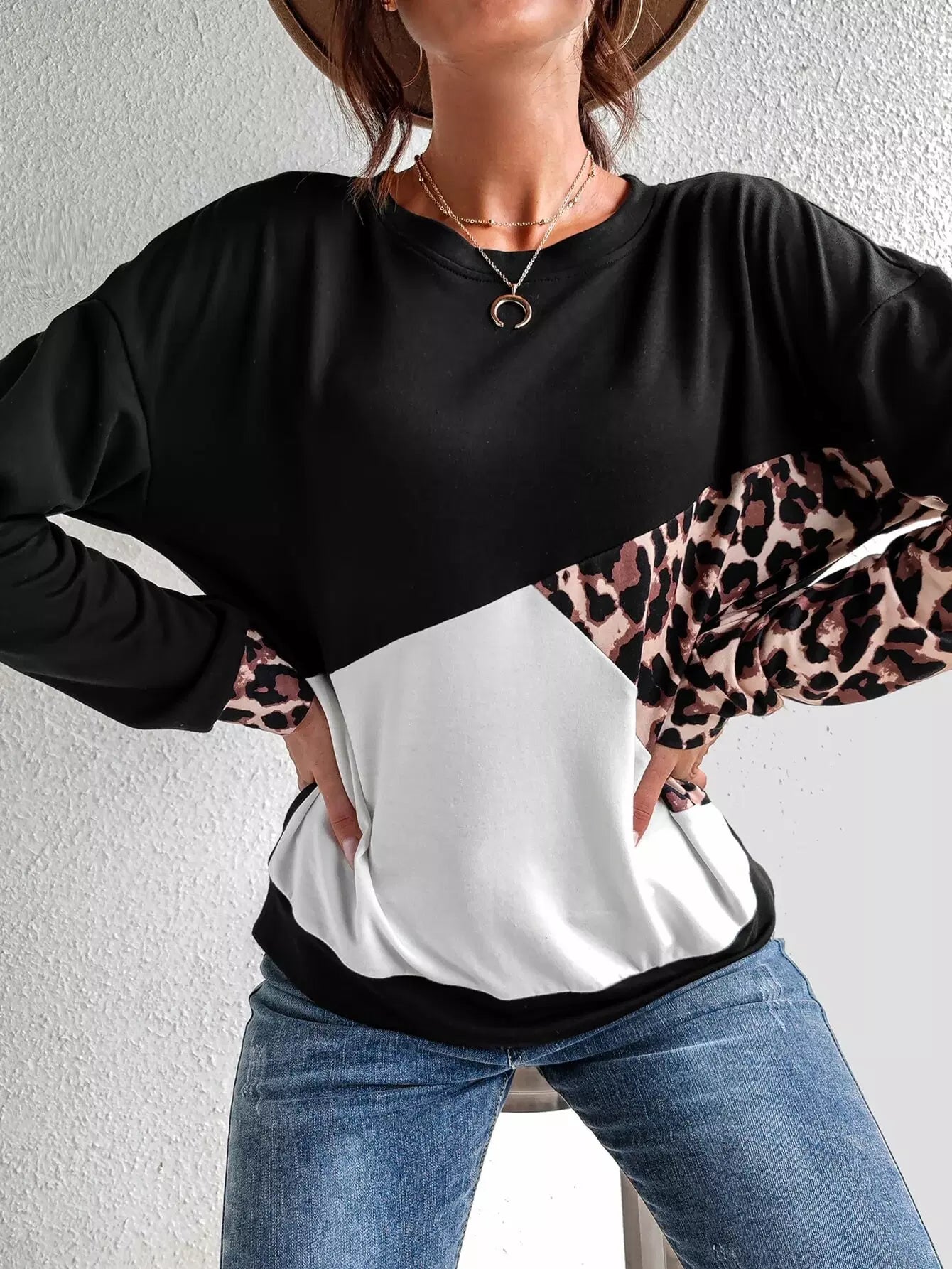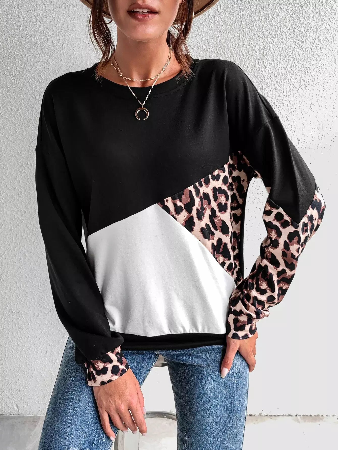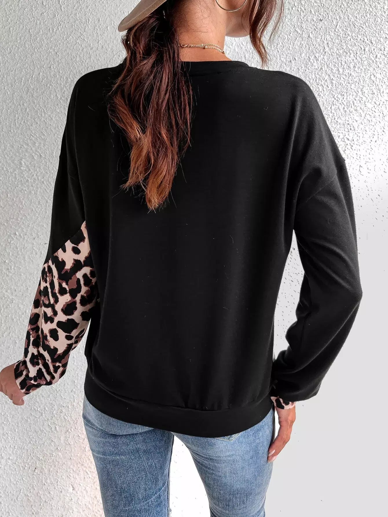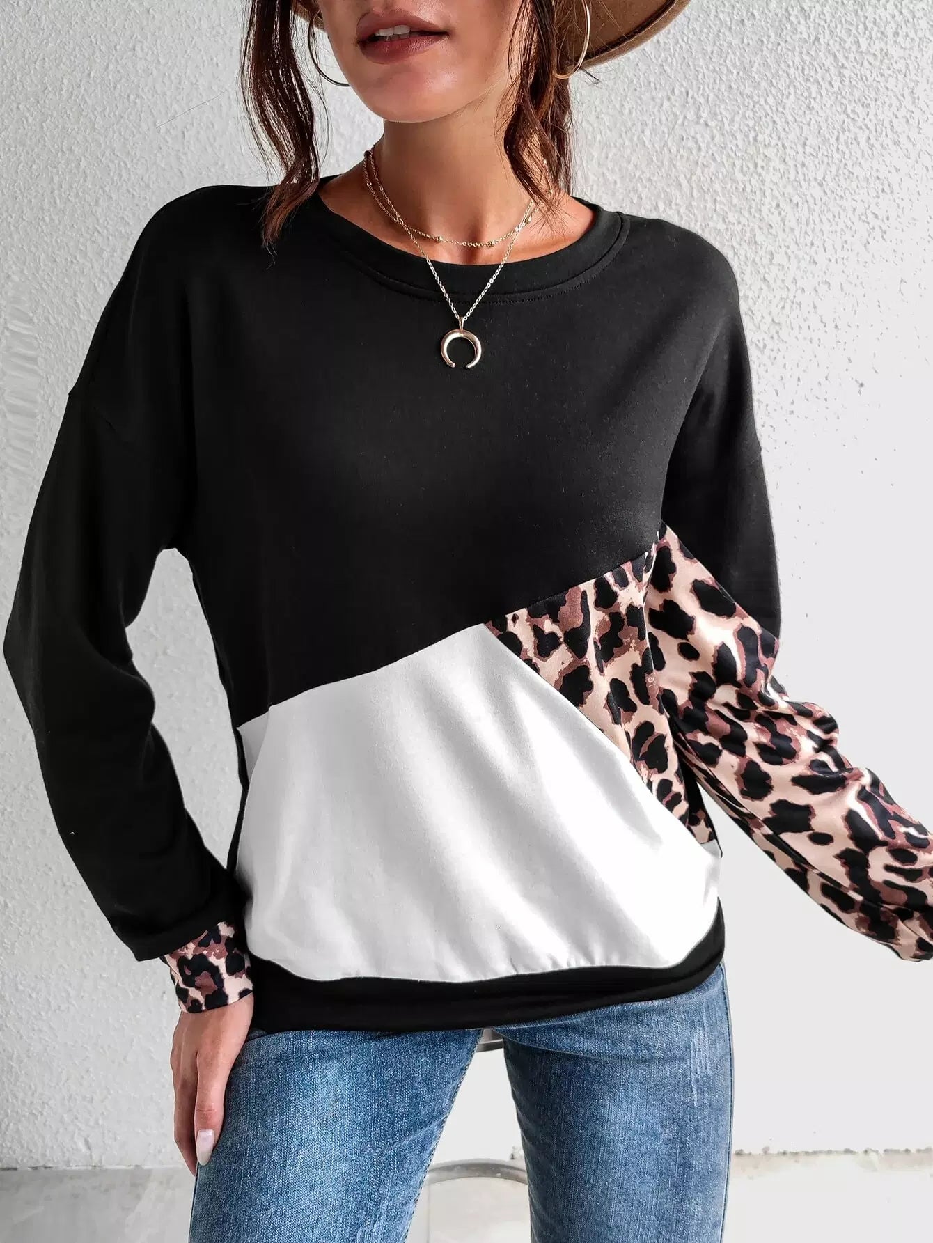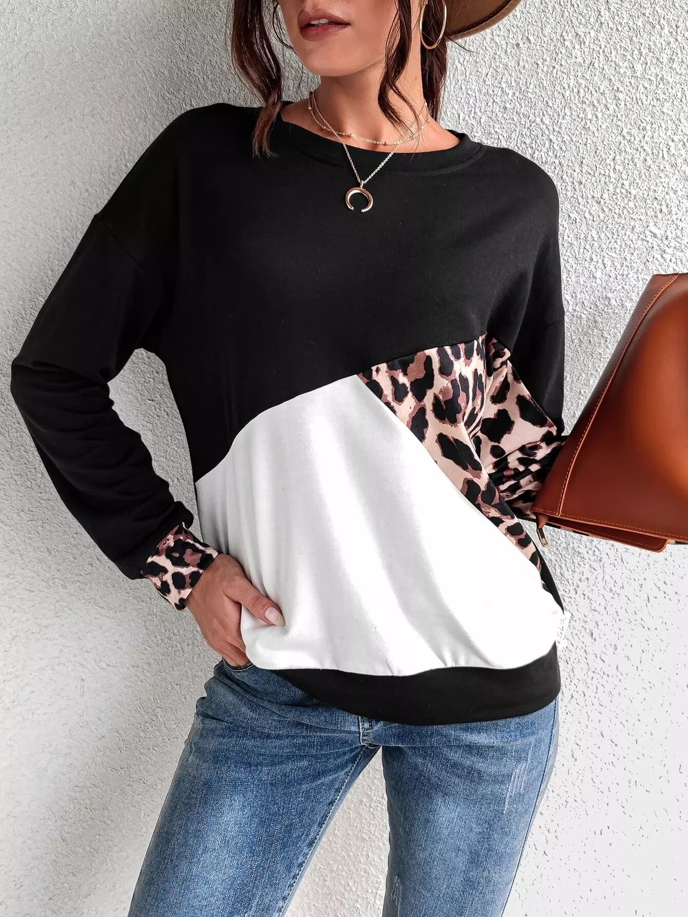 سويت شيرت ذو أكتاف منسدلة بلون جلد النمر