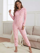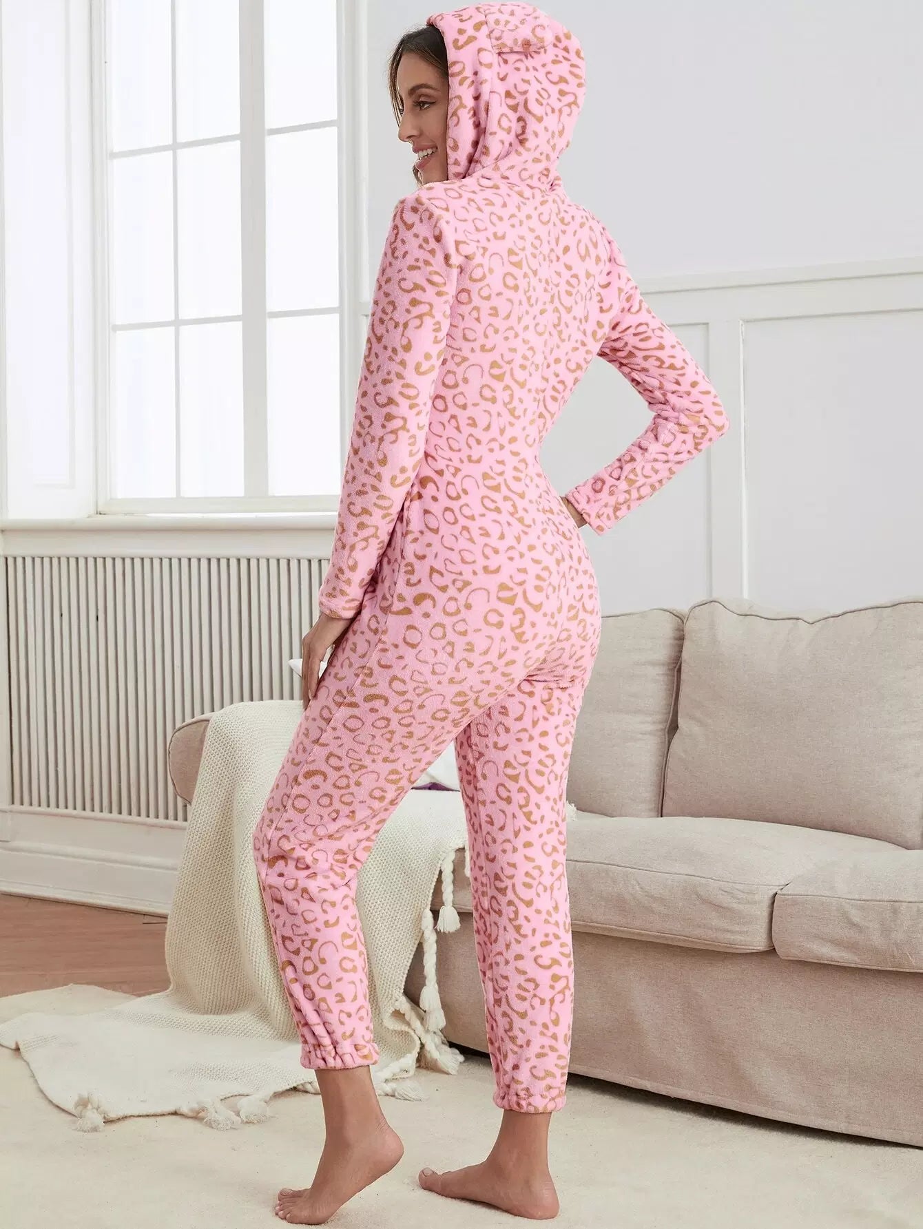 بذلة نوم بغطاء نوم بقلنسوة من الفانيلا مرقعة بسحاب ثلاثي الأبعاد بنقشة جلد النمر