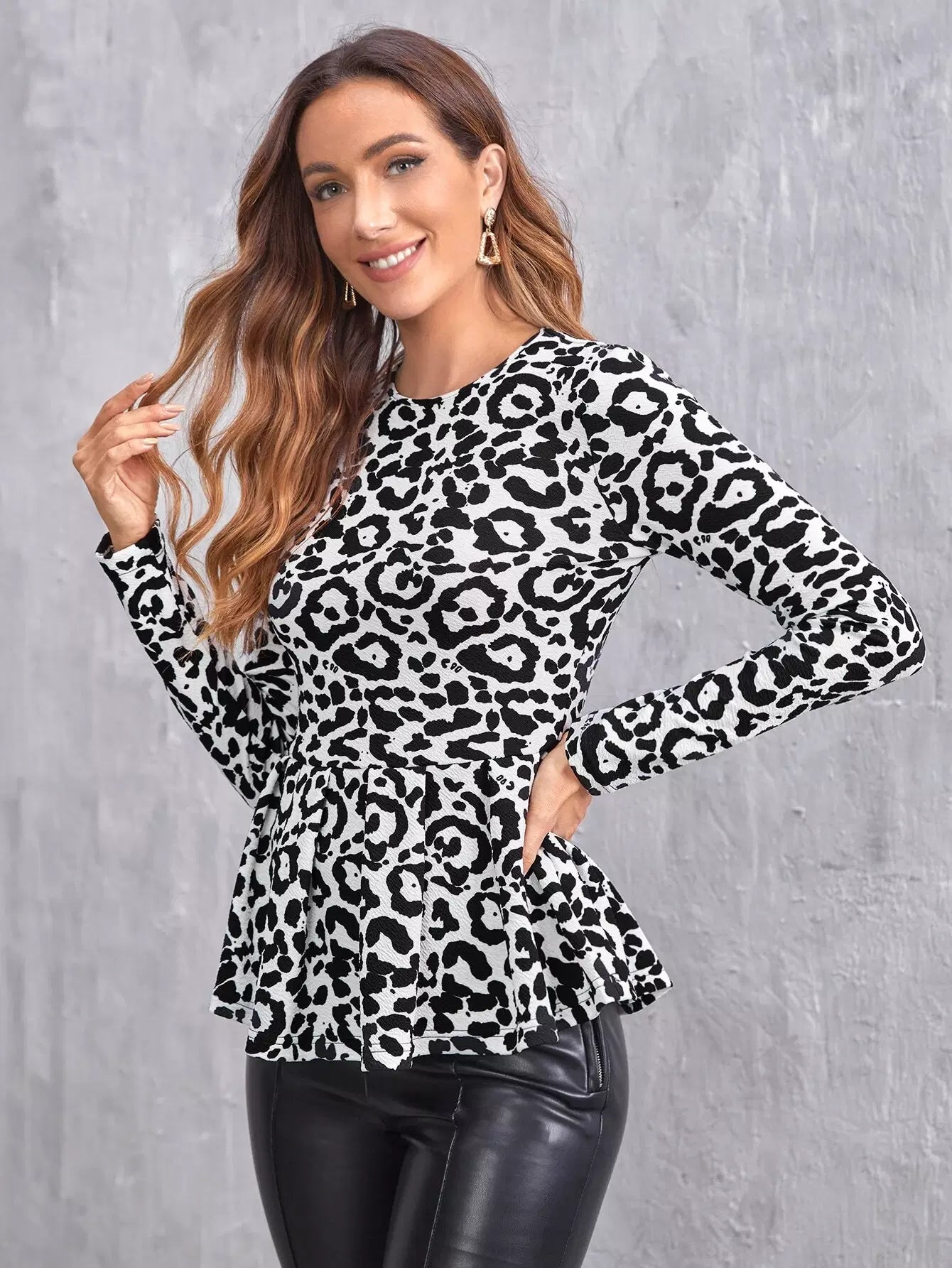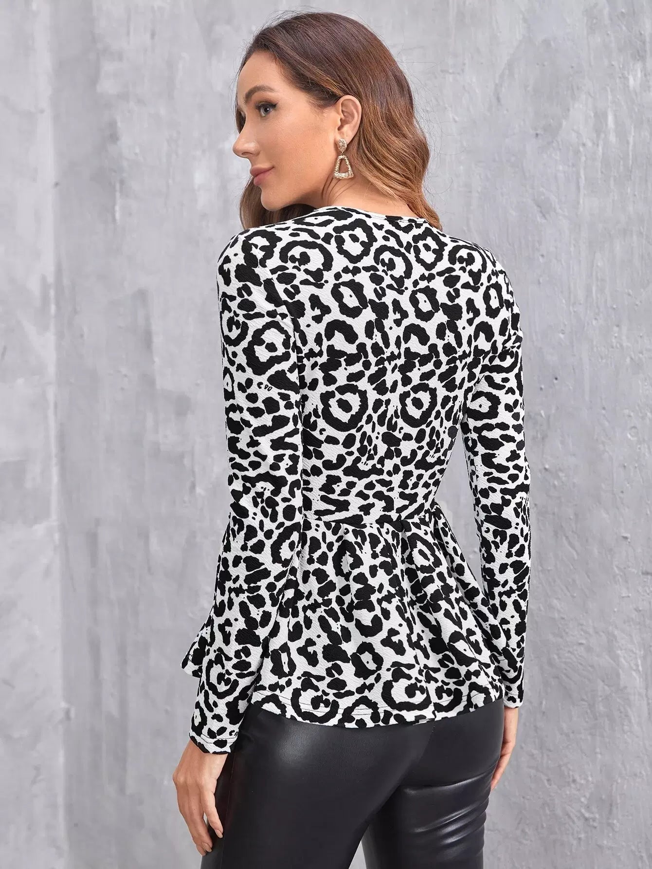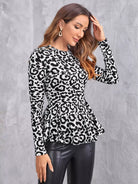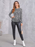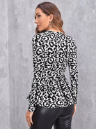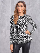 تي شيرت بطبعة جلد النمر مع حافة مكشكشة