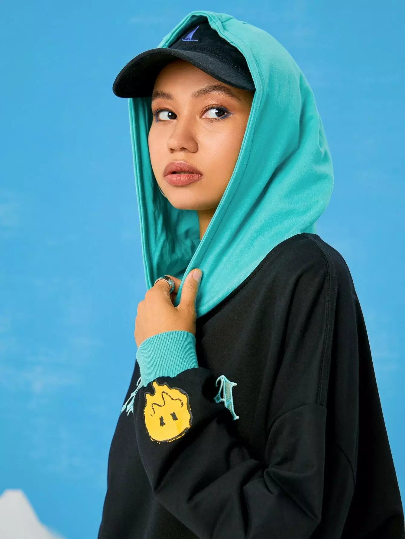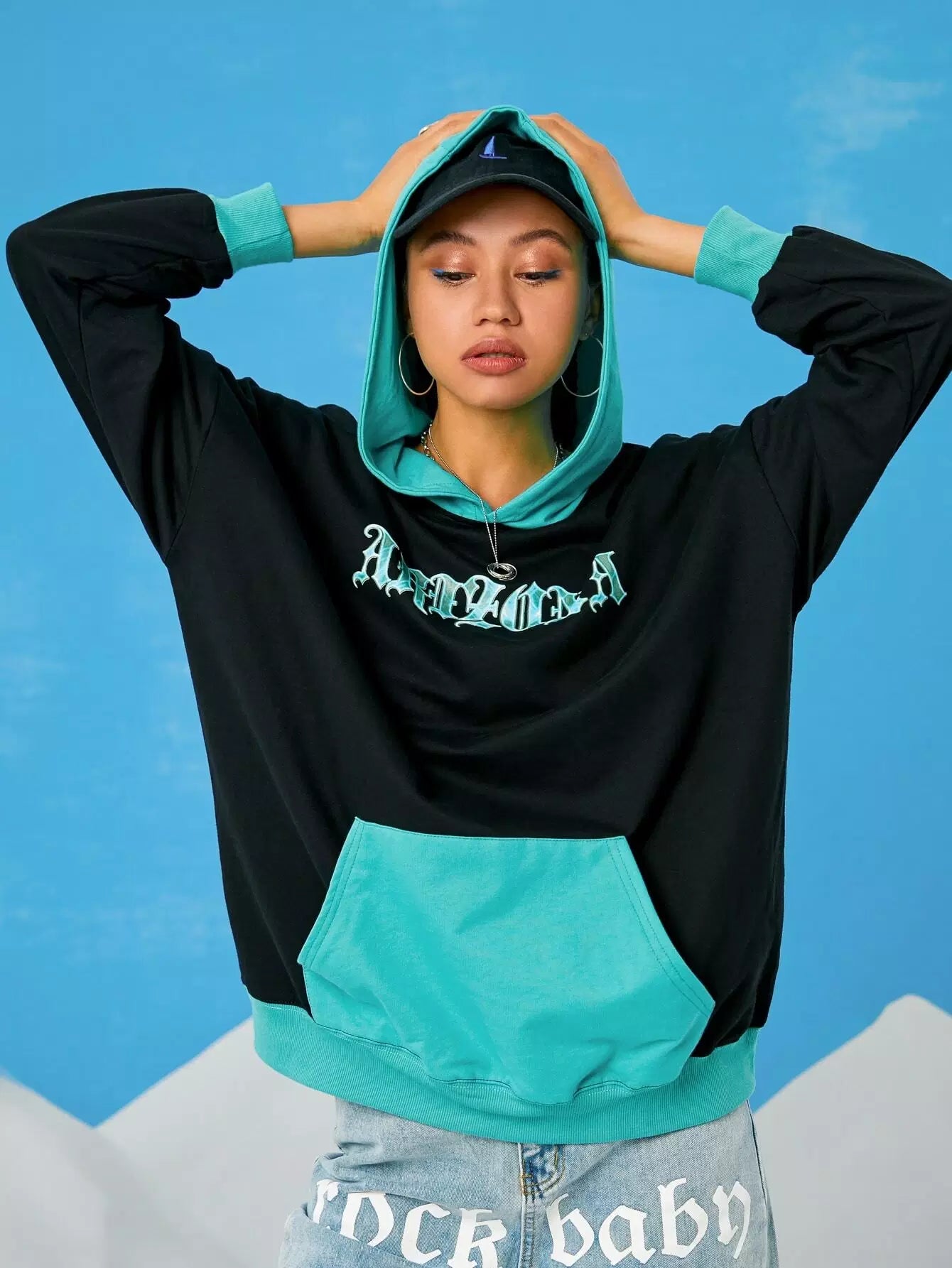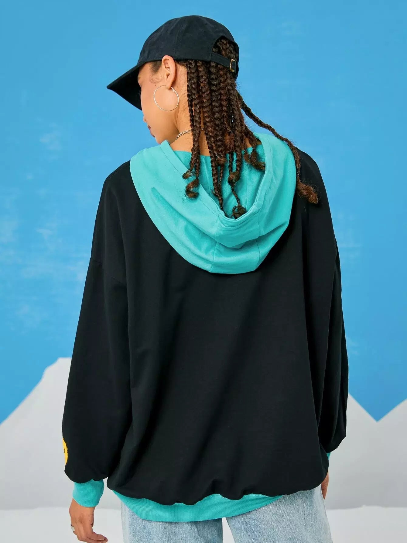 هودي بقبعة بقبعة كنغر ملونة بجيب حرفي