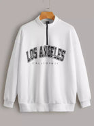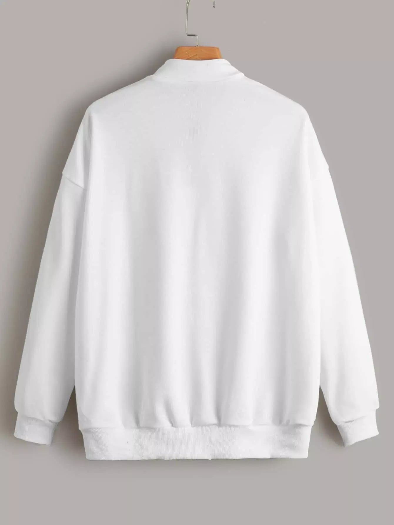 كنزة صوفية منسدلة على الأكتاف برسومات حروف منسدلة على الكتف بسحاب نصف مفتوح