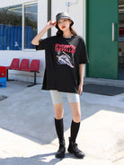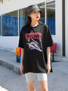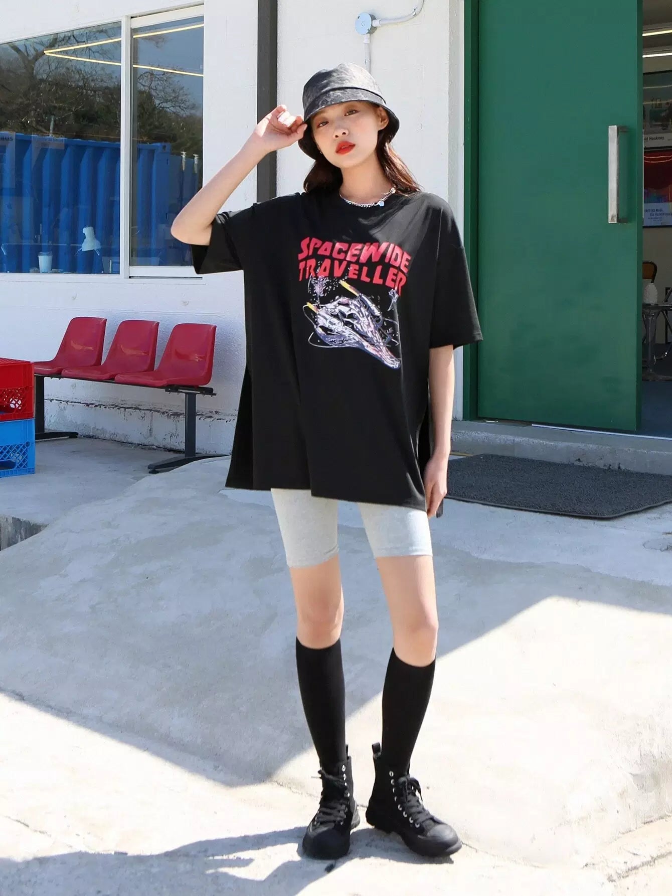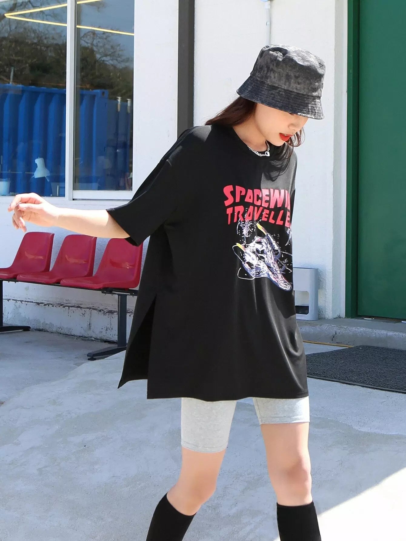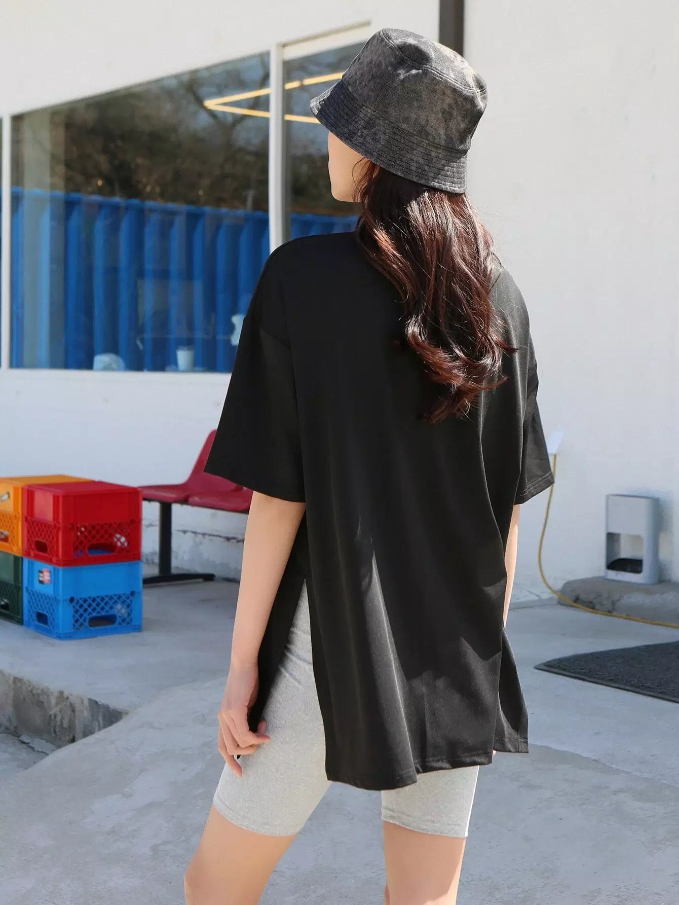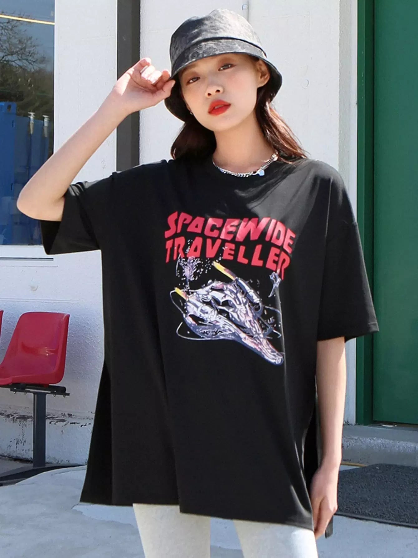 تي شيرت ذو أكتاف منسدلة برسومات على شكل حرف