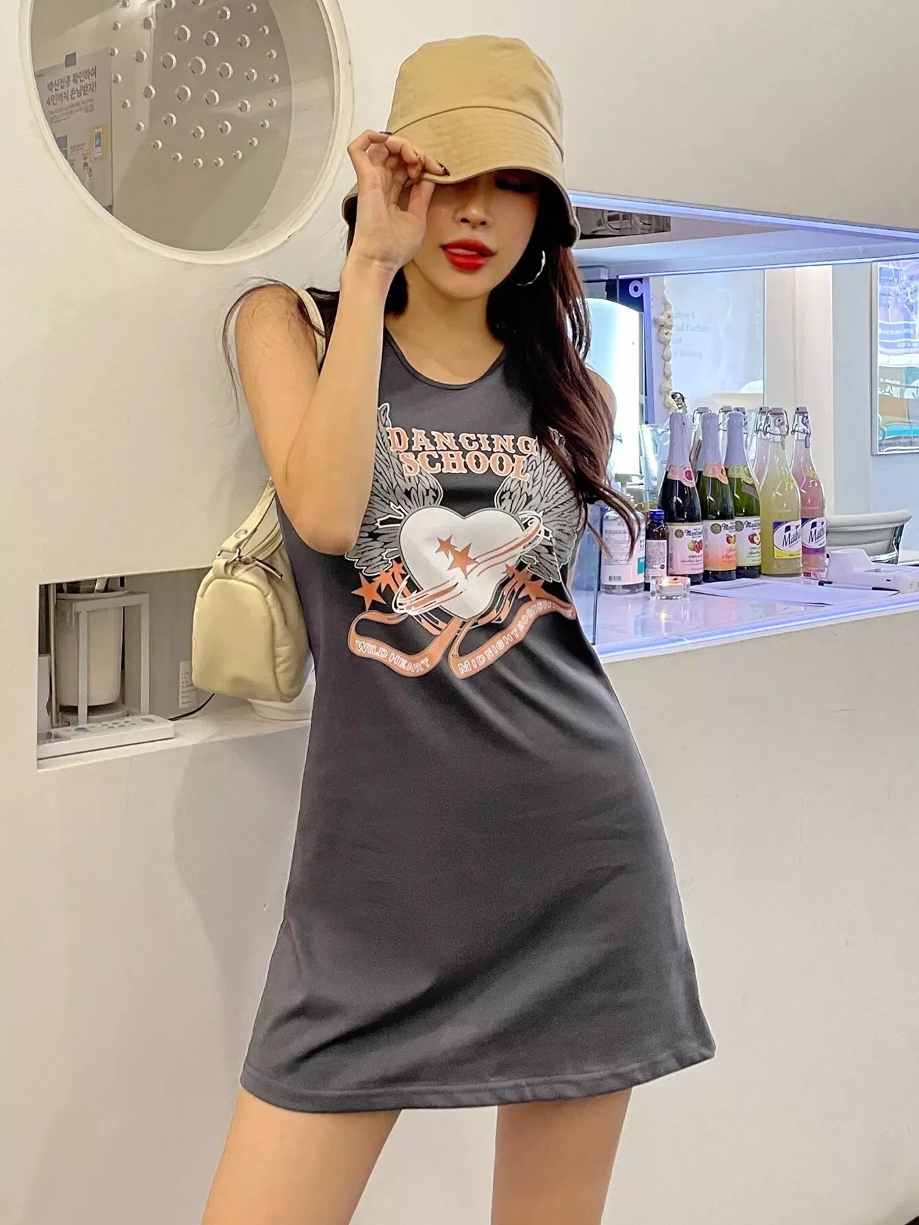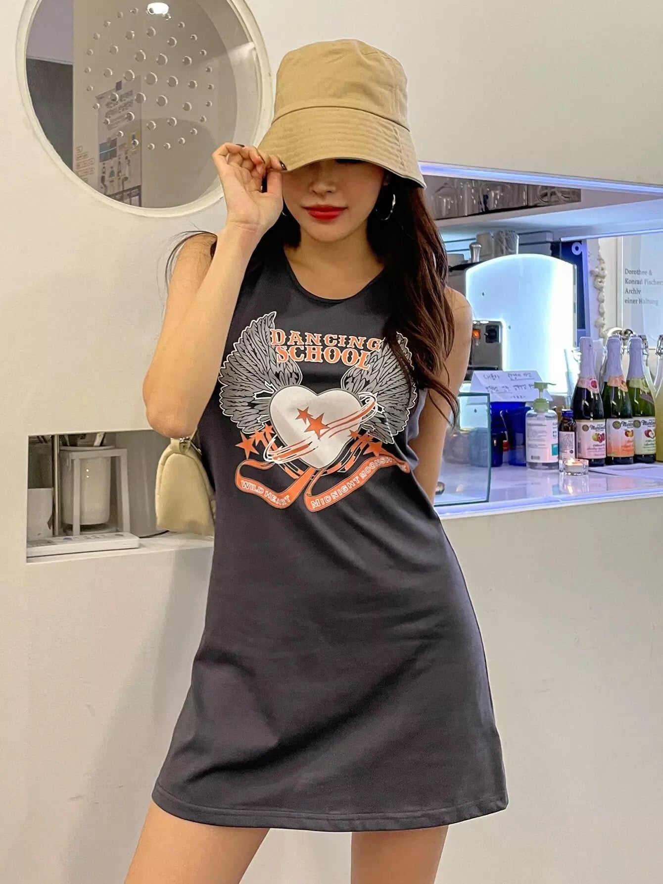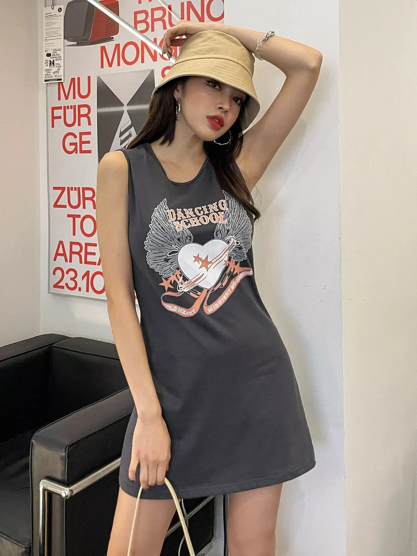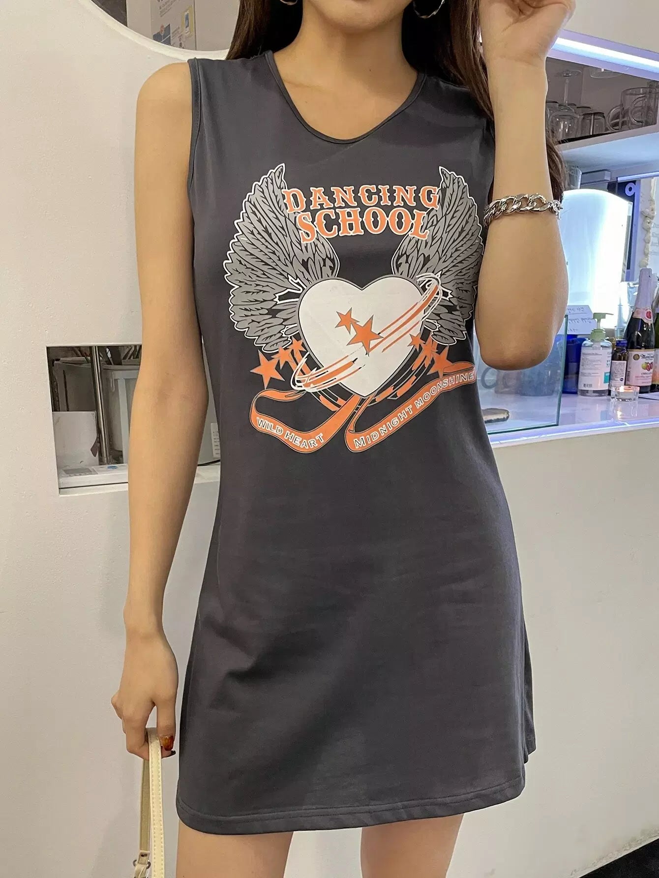 فستان بدون أكمام بطبعة حروف ونجمة