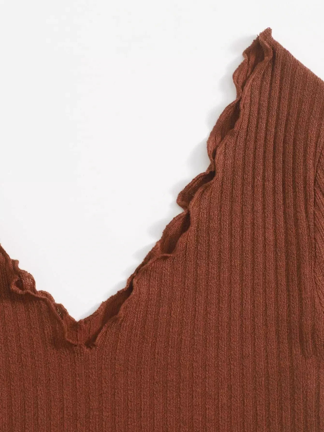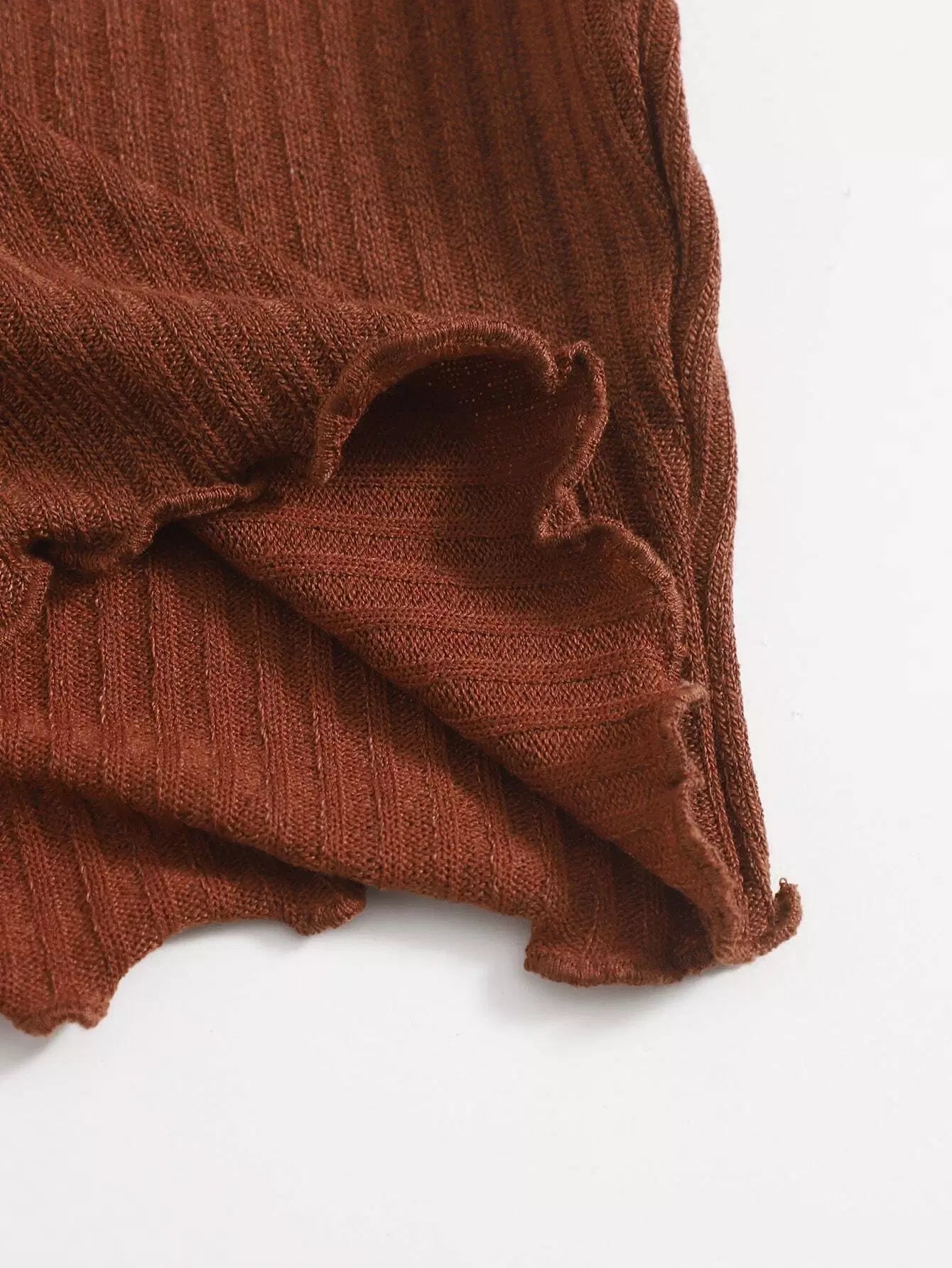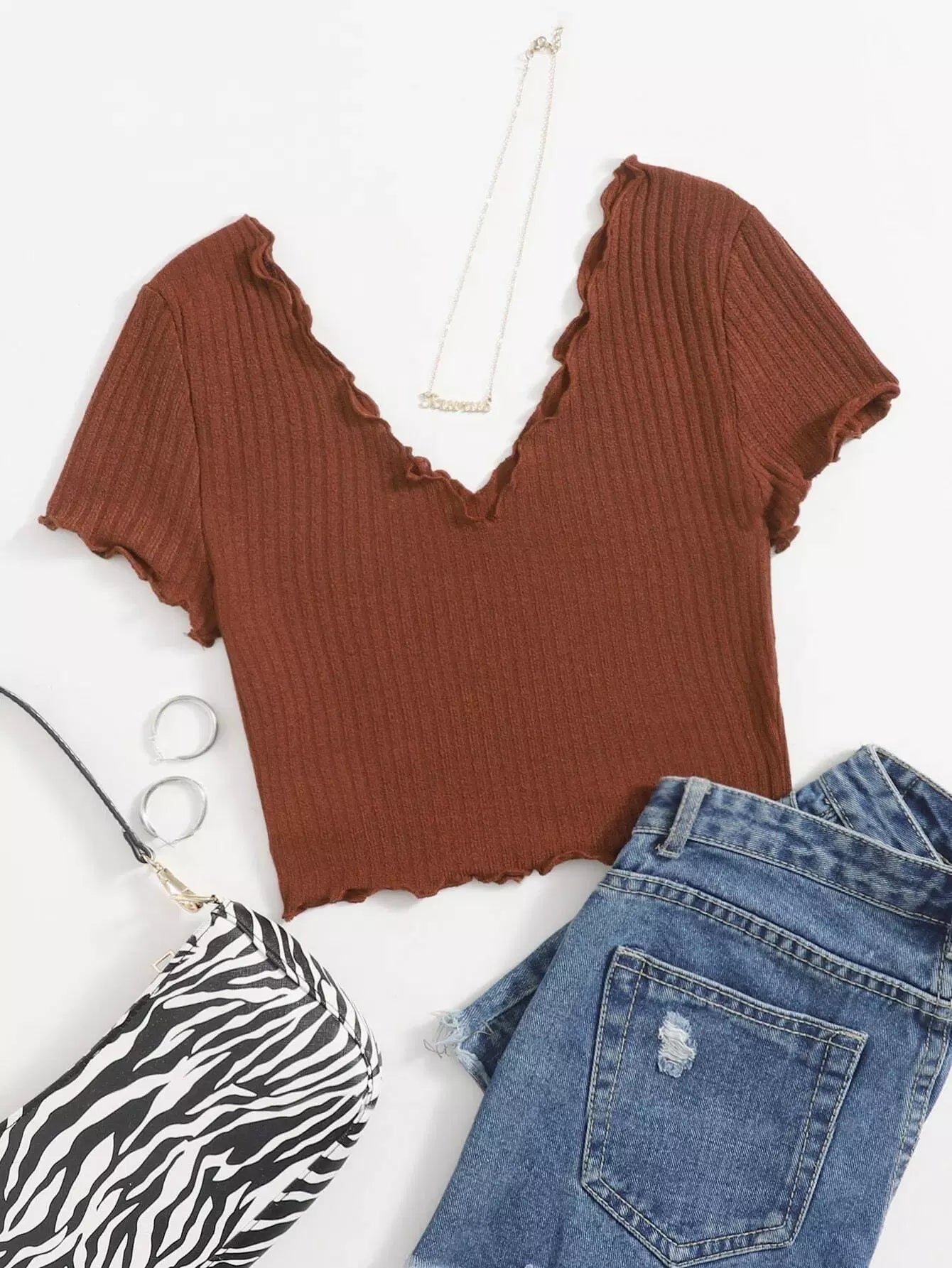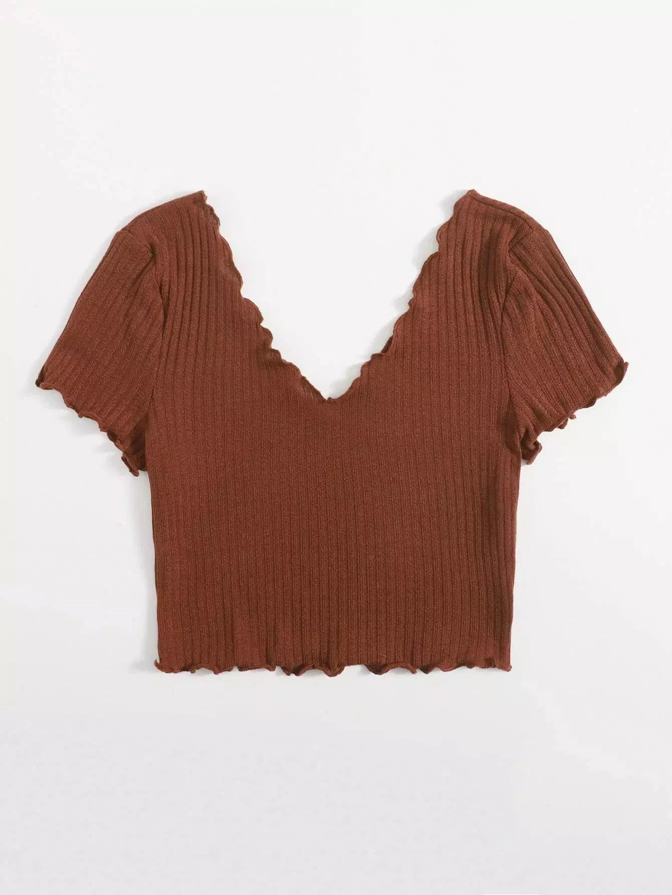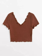 تيشيرت قصير محبوك على شكل ضلع محبوك بالخس