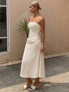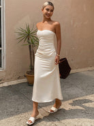 Livesso Women's Elegant Solid Color Beach Vacation Dress, Fall New Arrival Long Sleeve Dress