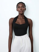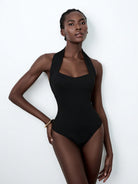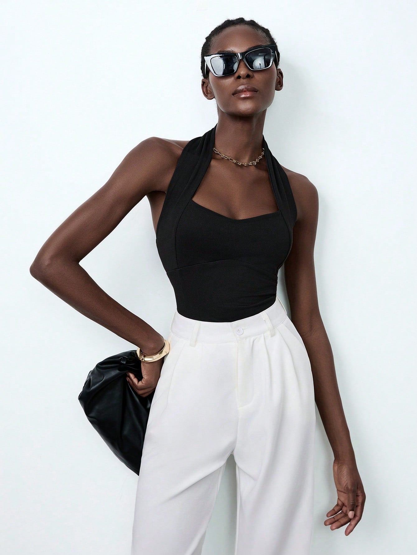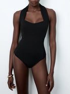 بدلة جسم نسائية من Lumivelle بلون سادة مع رباط حول الرقبة بدون ظهر