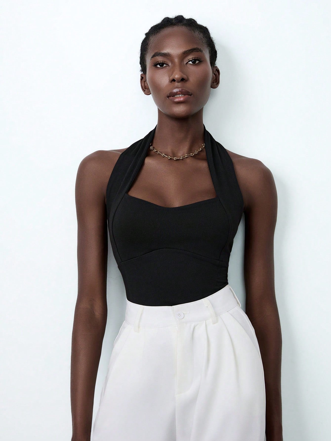 women Lumivelle Women's Solid Color Elastic Halter Backless Bodysuit