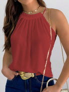 LUNE Summer Casual Solid Color Pleated Halter Neck Shirt